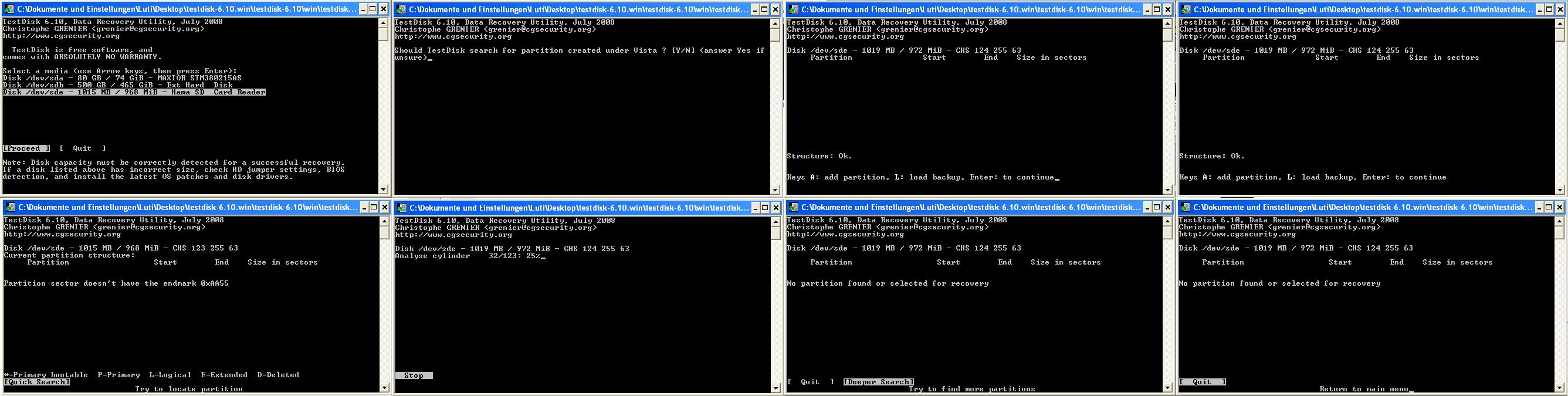 Du darfst dann Testdisk nicht beenden da du dann die Einstellungen verlierst.