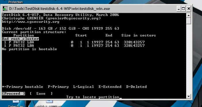 Testdisk findet beim Versuch einen Bootsektor zu schreiben nicht die Clustergröße vom Dateisystem.