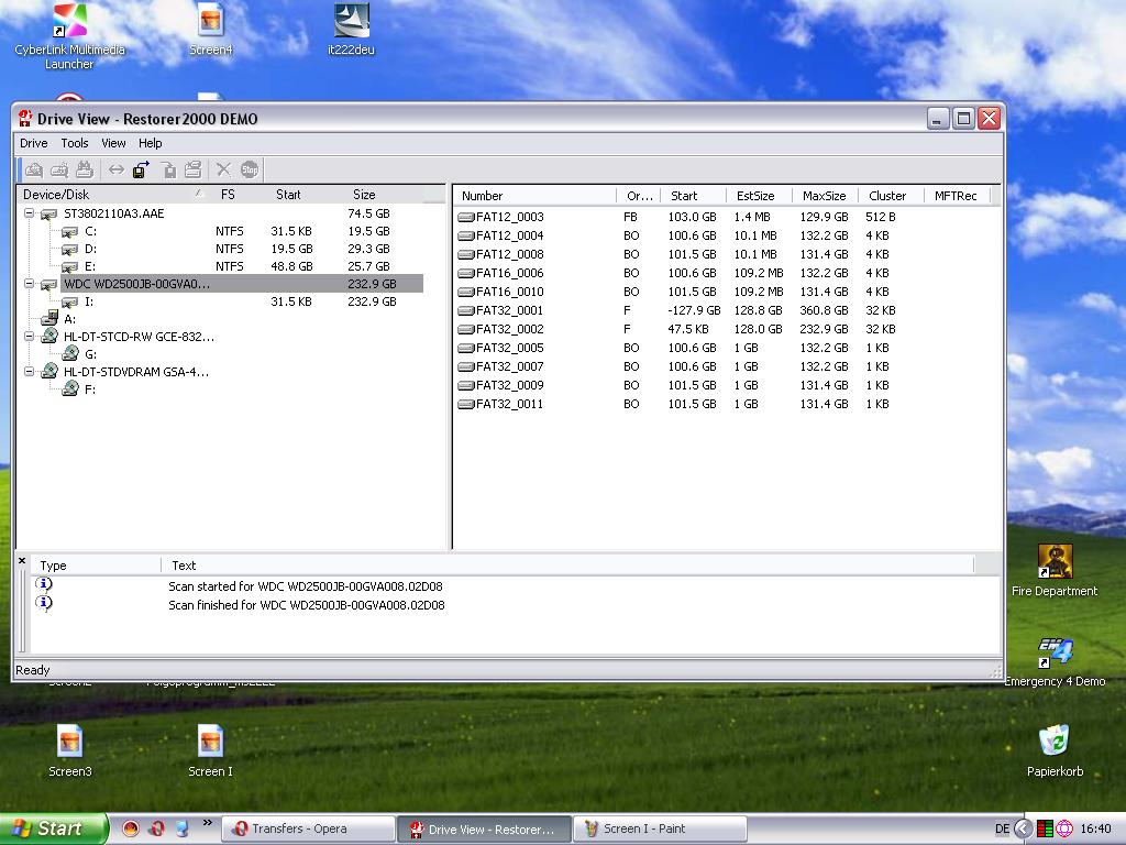Auf jeden Fall ist es unverständlich das Restorer2000 bei einem Festplattenscan nicht mal die 18 GB große Partition findet.