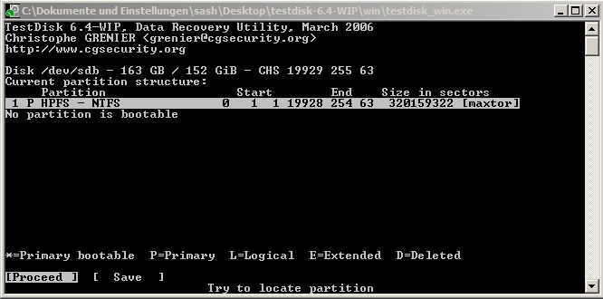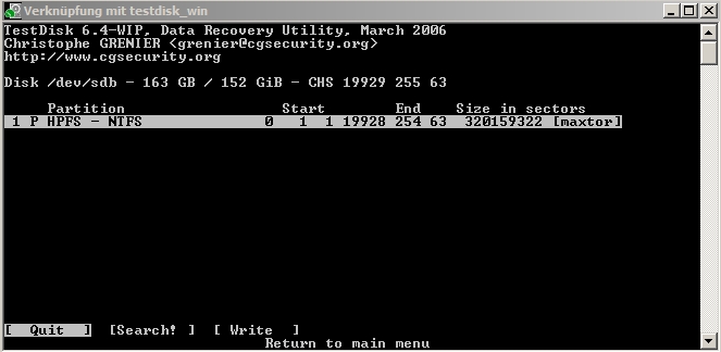 Starte Testdisk und wähle wenn nötig deine Festplatte aus.