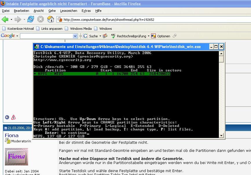 sehr wichtiger Hinweis, daß der Extrapolated Bootsektor (so heißt der neu geschriebene) das Dateisystem richtig erkannt hat und somit auch die Dateien anzeigt.