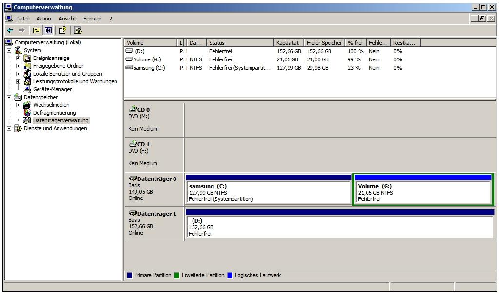 Die Partition ist beim nächsten Systemstart vorhanden.