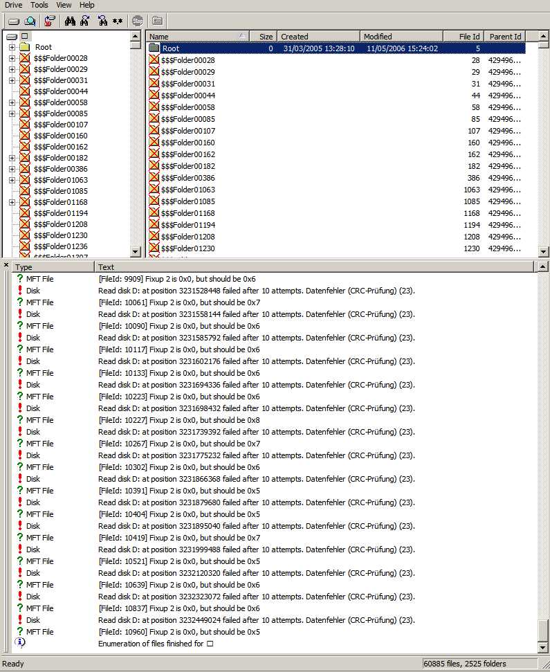 Auch ein Hinweis ist das Restorer sehr viele Speicherfehler (CRC) bereits ausgibt.