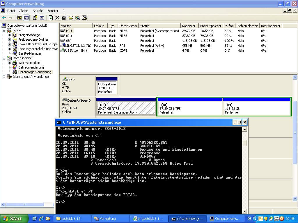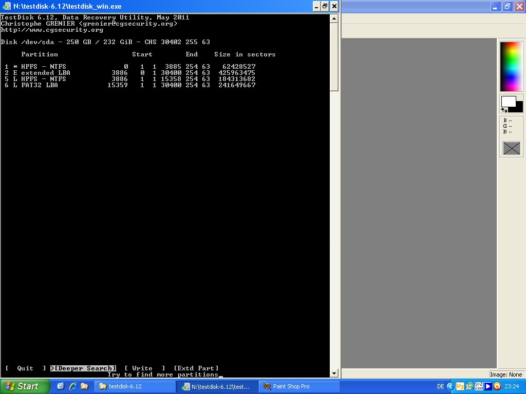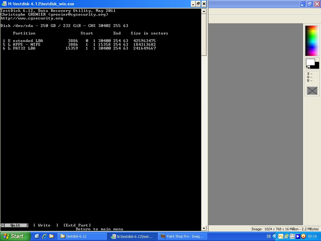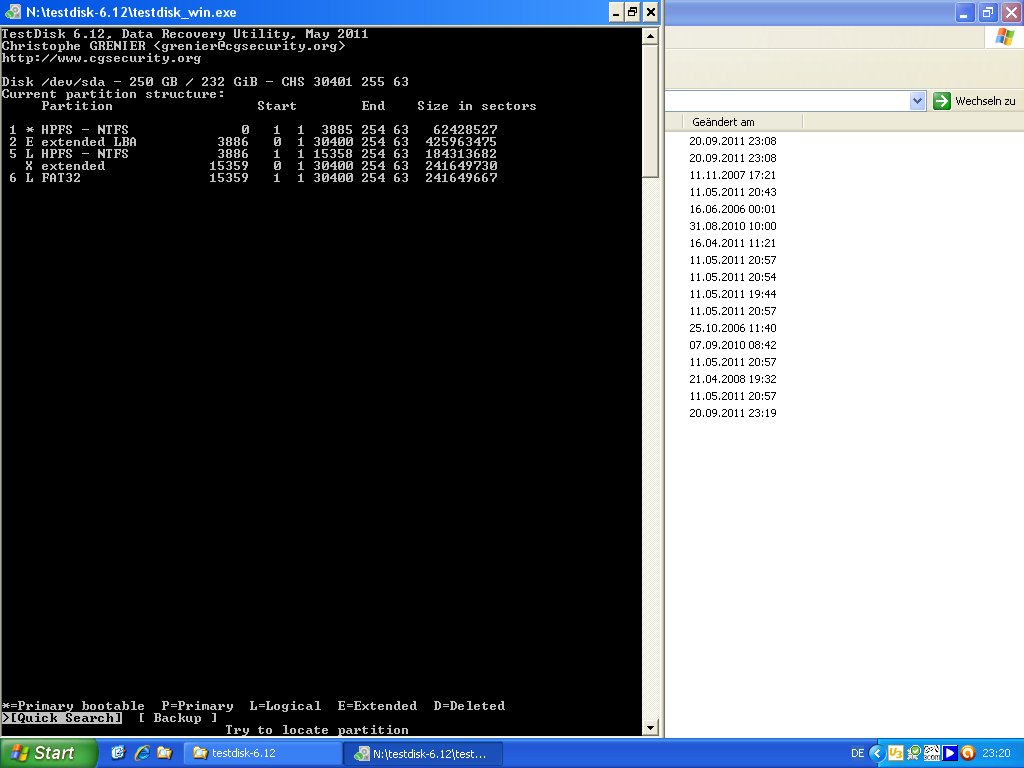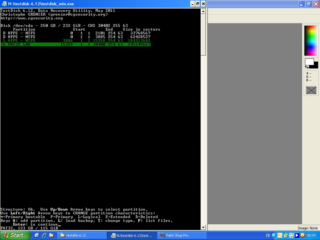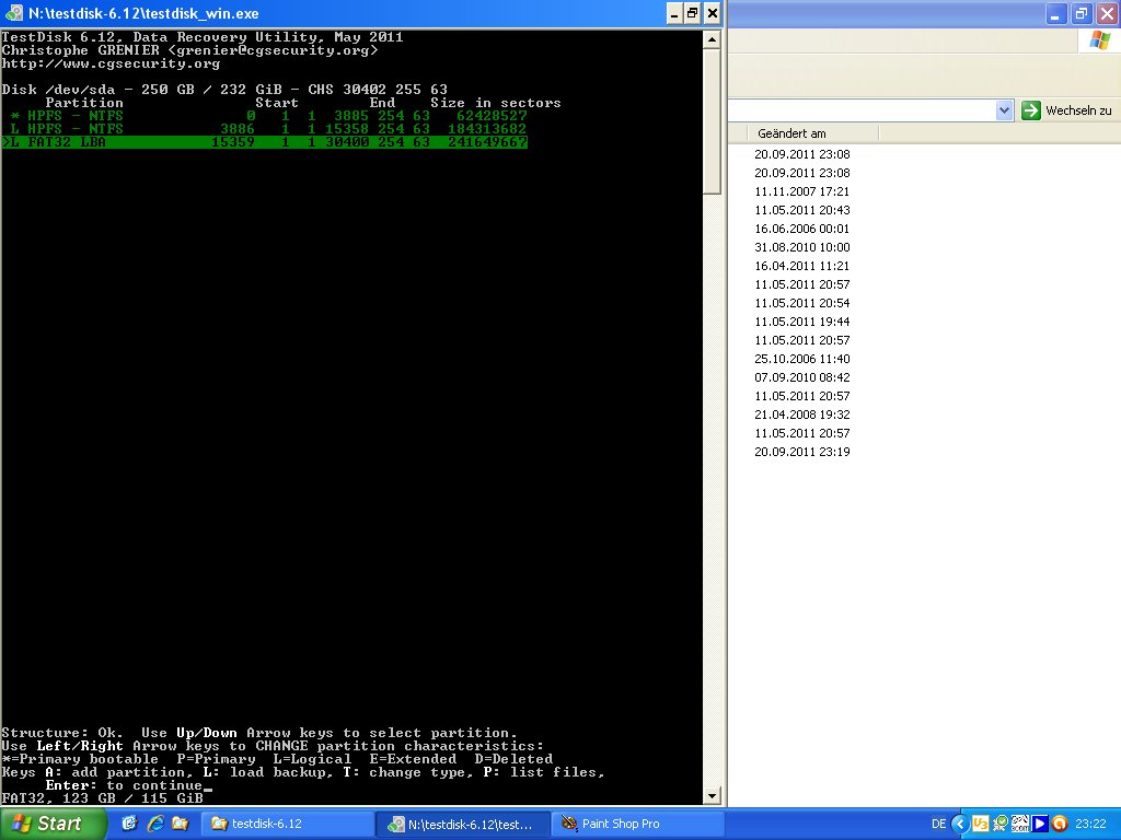 Habe Screenshots mit Testdisk gemacht: