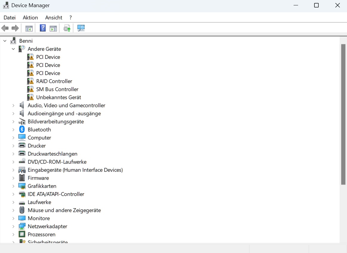 Ich habe gestern Win11 Pro neu installiert und habe auch alle updates geladen bloß im Geräte Manager habe ich noch einige ausrufezeichen (siehe bild)