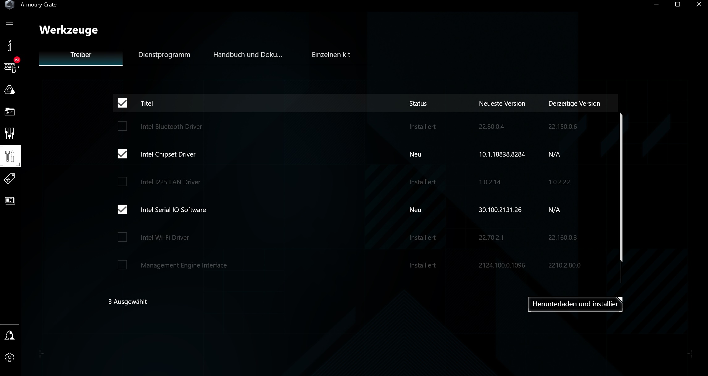 Mittels Asus Crate hatte ich bisher immer den Treiber installiert ohne Probleme und auch jetzt lädt er ihn runter und installiert dann muss ich neustart machen aber nix passiert