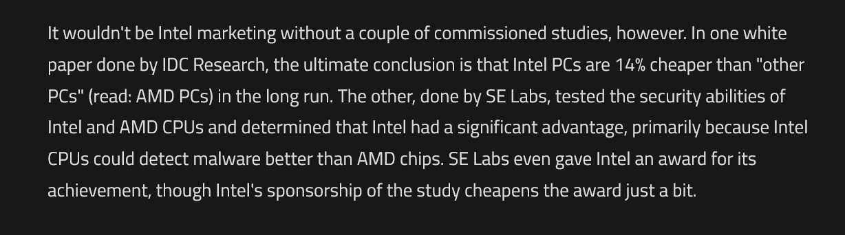 AMD kommt in dem Umfeld mit der Pro-Serie noch immer nur schleppend voran, an ihrer Seite spielen so richtig eigentlich nur HP und Dell mit. Bei Intel hingegen sind es sowohl die beiden Branchenriesen, aber auch nahezu alle anderen wie Dell, Acer, Asus, Fujitsu, Panasonic und Samsung.