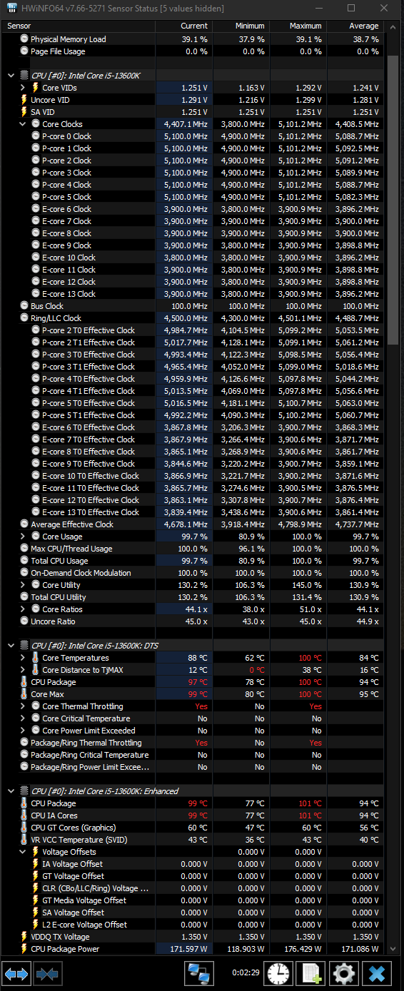 Nun habe ich schon in einigen Foren gelesen das der i5-13600K bei anderen Usern um die 20000 - 24000 Punkte erzielt und bei anderen teilweise aber auch nur 10000 Punkte (der Score war bei denjenigen die ebenfalls einen Forumbeitrag erstellt haben). Bei mir jedoch ist der Score ja so niedrig das ich mich frage ob irgendetwas an der Hardware kaputt ist oder der Score mir schlichtweg egal sein sollte, da bisher alle Spiele ganz normal laufen. (Noch nicht wochenlang getestet aber seit 1 Woche lief alles beim Gaming stabil um die 80 Grad durschnittlich). Schließlich habe ich nicht wenig Geld für den PC ausgegeben und wollte mal eure Lösungsvorschläge bzw. eure Meinung dazu hören.