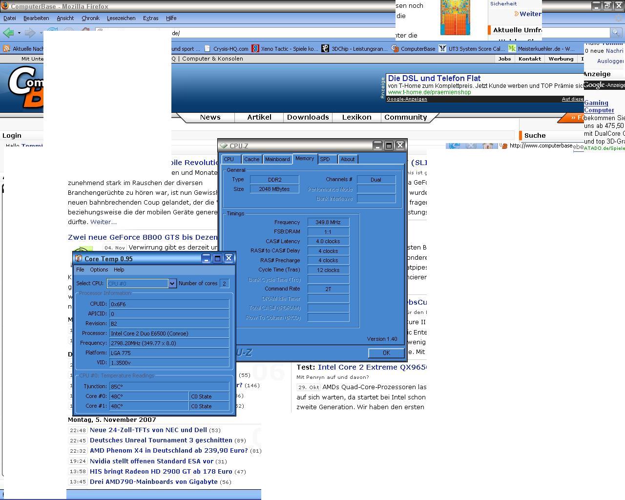 Wie hoch ist denn deine VCore momentan (CPU-Z, Speedfan)? Die RAM-Timings kannst du im BIOS manuell auf die vom Hersteller spezifizierten Einstellungen setzen. Der RAM-Teiler sollte bei 1:1 bleiben.