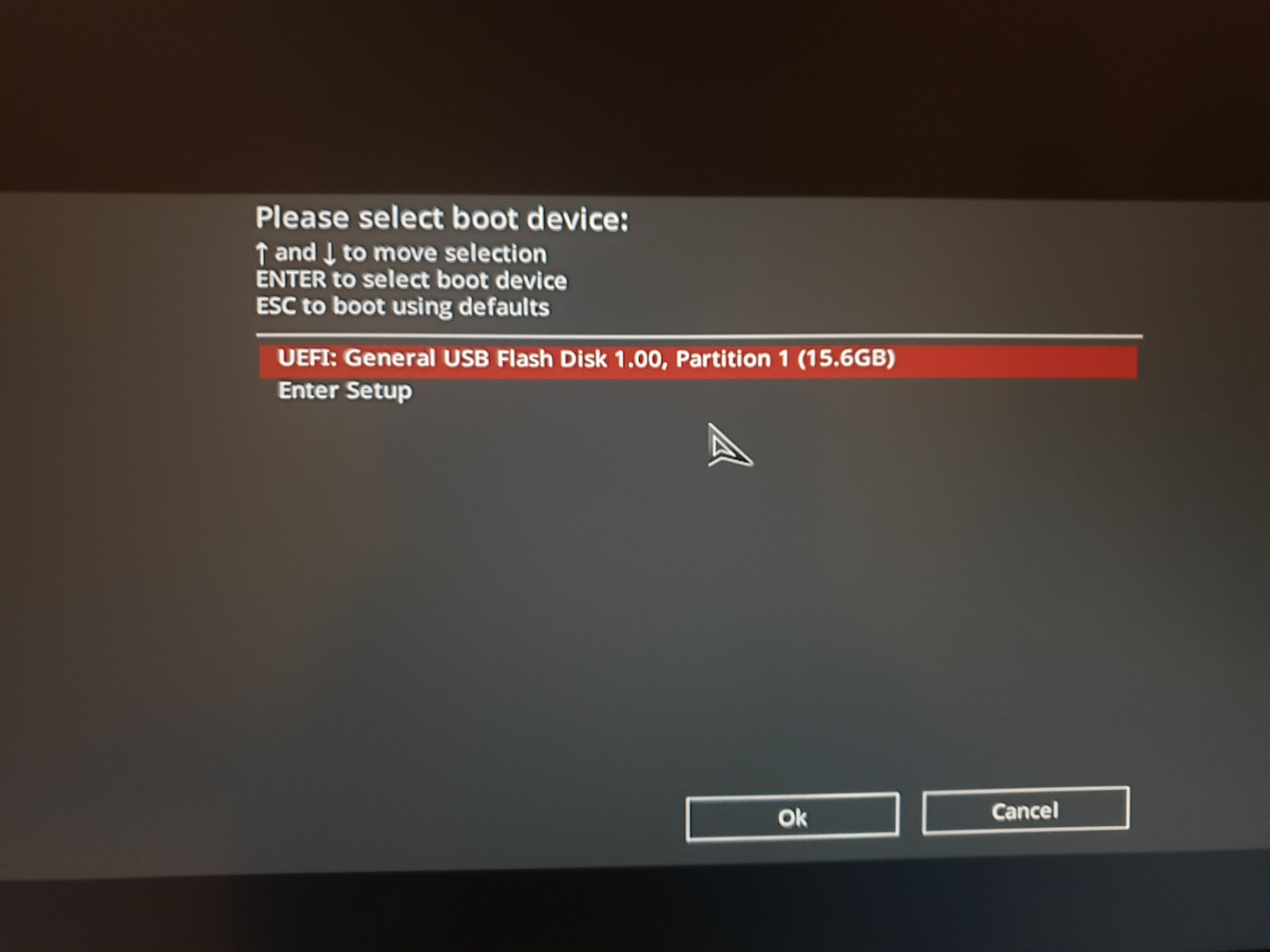 Dann hab ich das alles auf einen usb stick gebrannt, um das dann anschliessend in den Pc zu packen und die Installation zu starten.