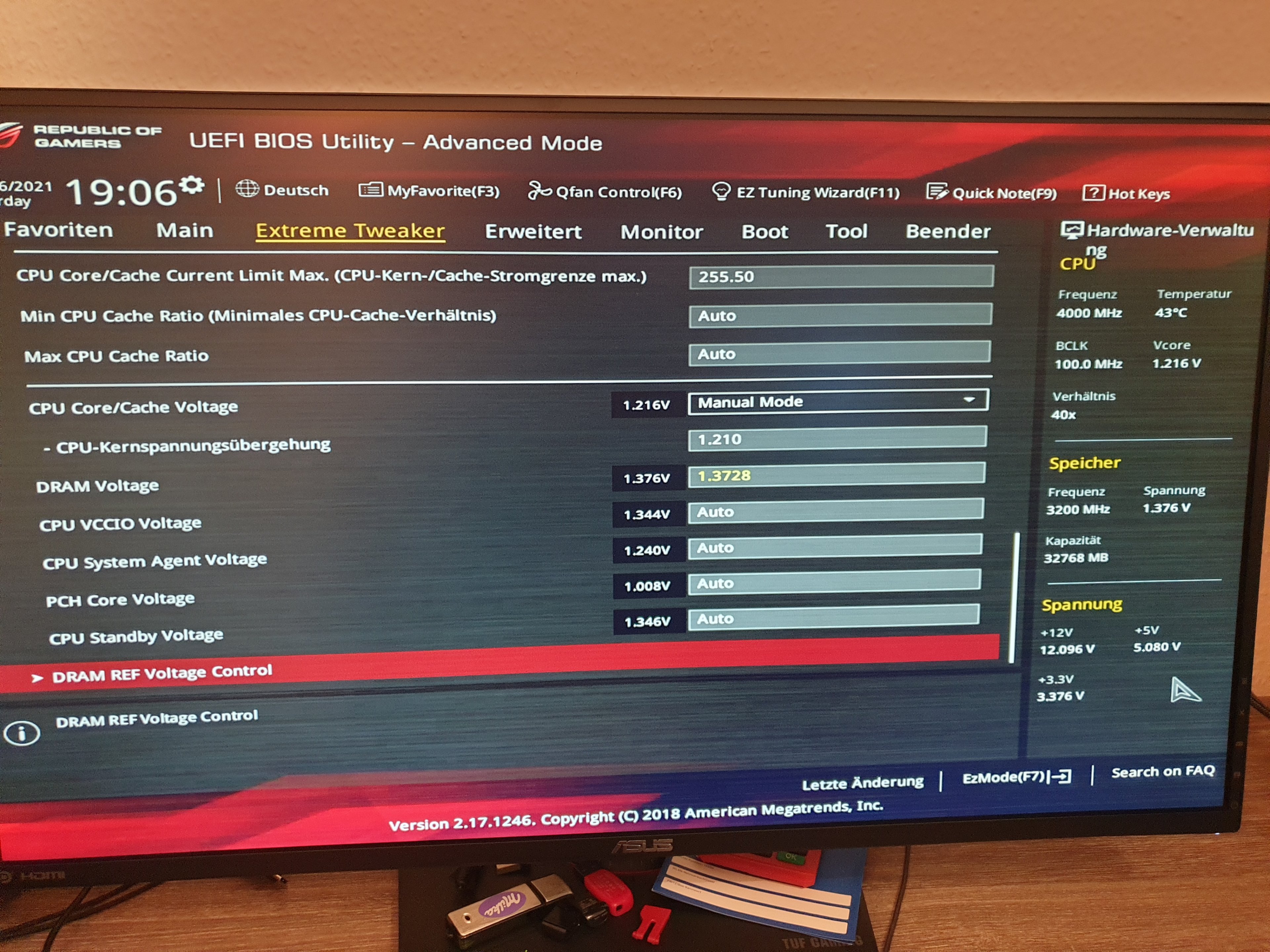 ich habe mir neuen RAM angeschafft da ich zukunftsweisend ein B-Ware Schnäppchen (nur Packung geöffnet, gute Samsung B-Dies Double Ranked) gemacht habe (G.SKill Trident Z RGB 32GB Kit DDR4-4000 CL19 (F4-4000C19D-32GTZR)).