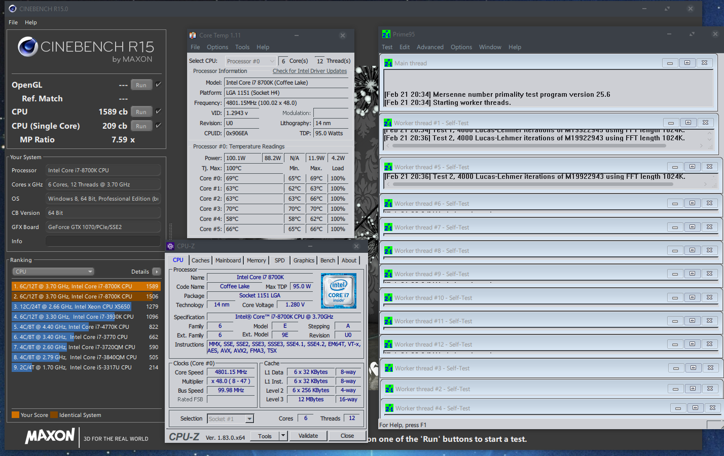 seit drei Tagen bin ich mit meinem 8700k beschäftigt und eigendlich jetzt sehr glücklich den Sprung vom 4690k@4,5GHz auf den 8700k@4,8Ghz getan zu haben.