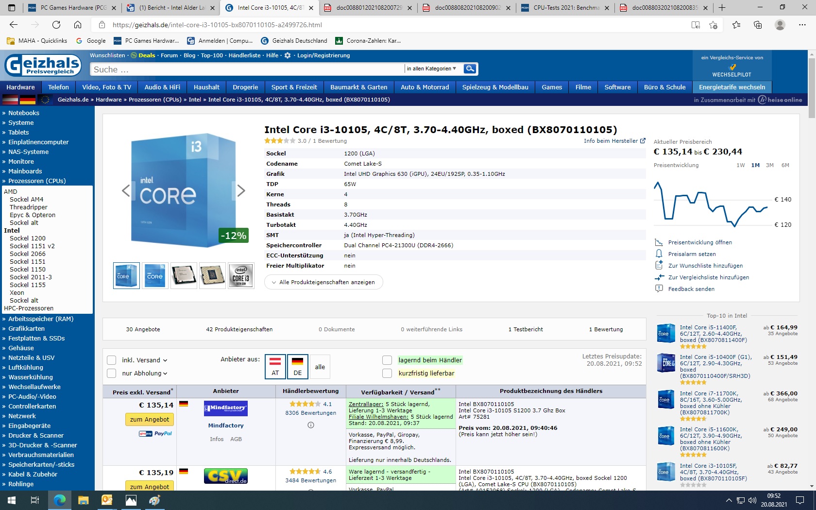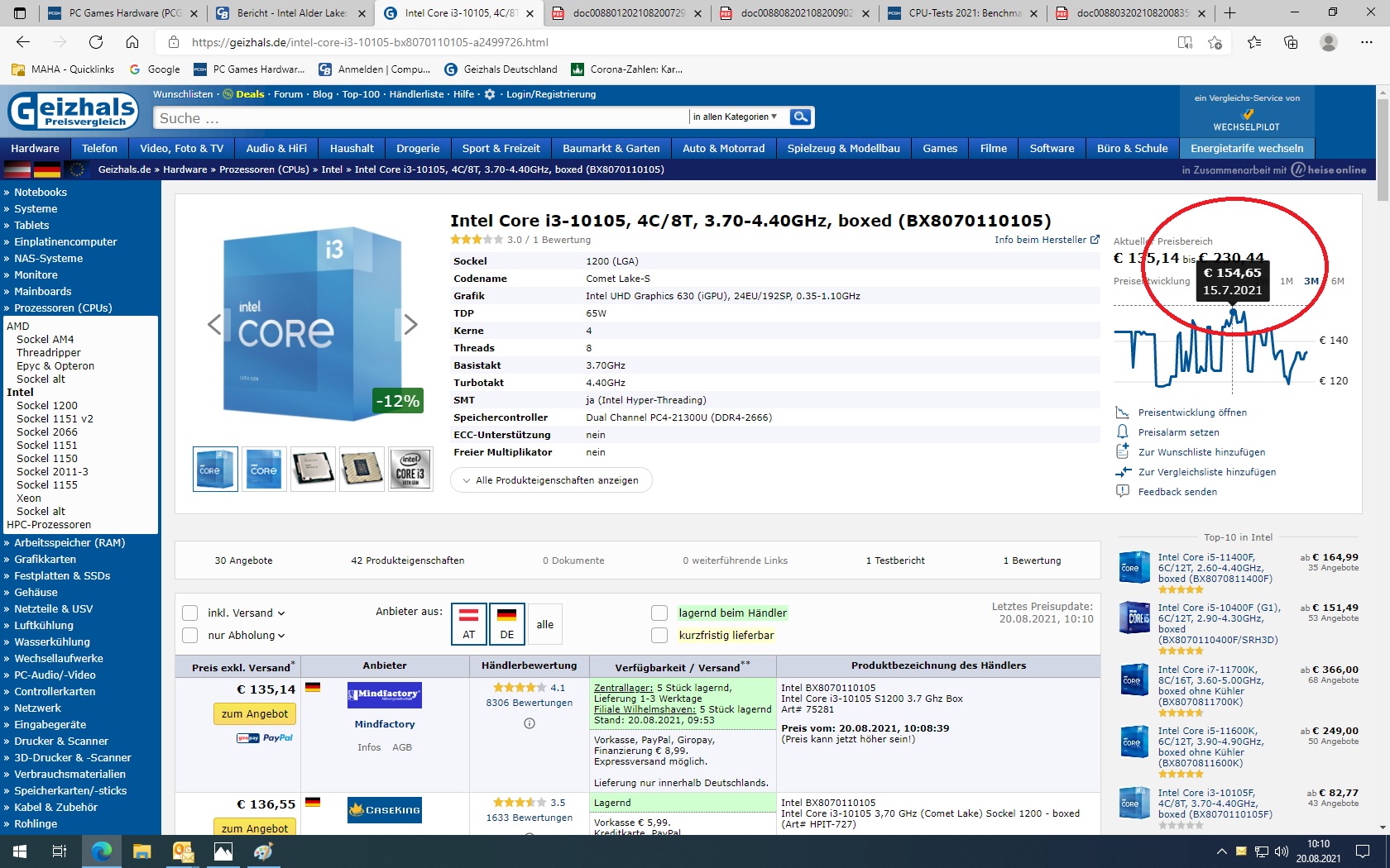 Die i3-10105 CPU, die Du mit 135 Euro aufgeführt hast, hat eine Chip-Grafikeinheit.