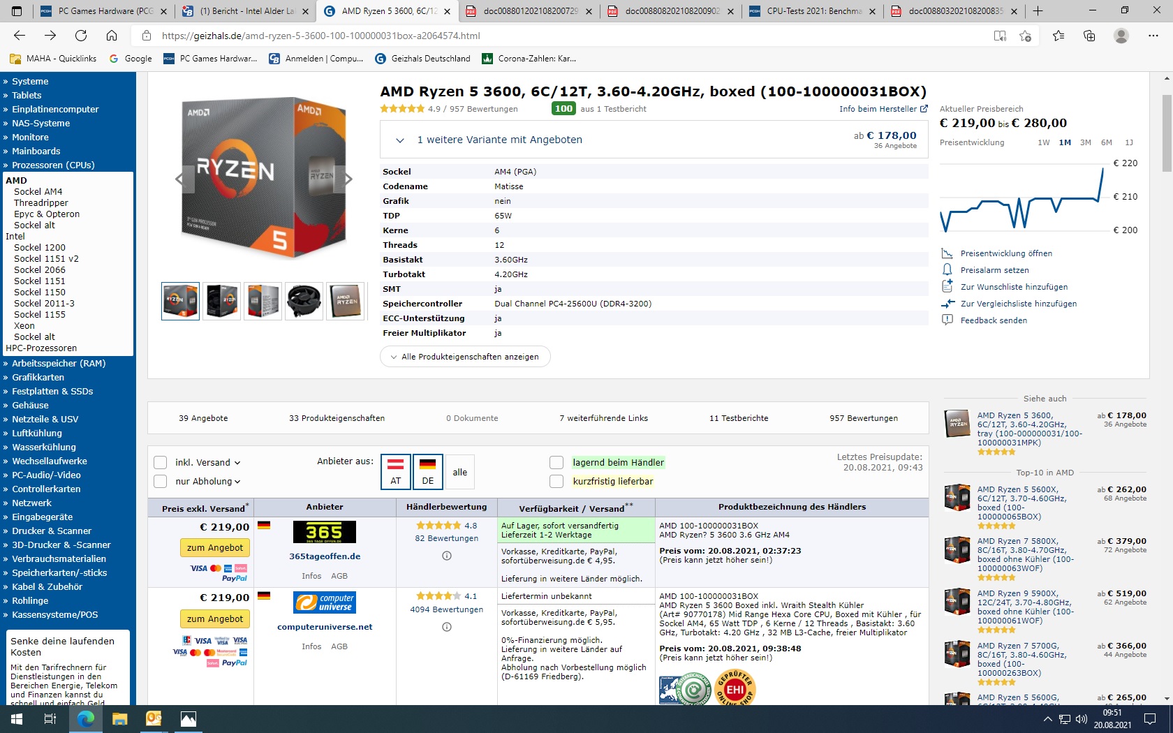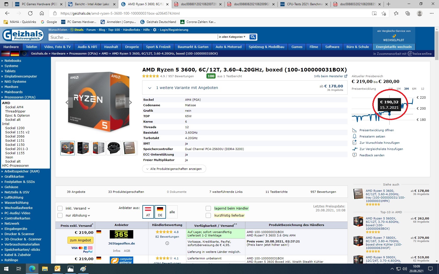 Auch Du vergleichst wieder nicht richtig.Onkel Föhn schrieb:Am 15.07.´21 (vor 5 Wochen) hat der i3 155 € gekostet und der 3600 lag am selben Tag bei 190 € = 35 € !