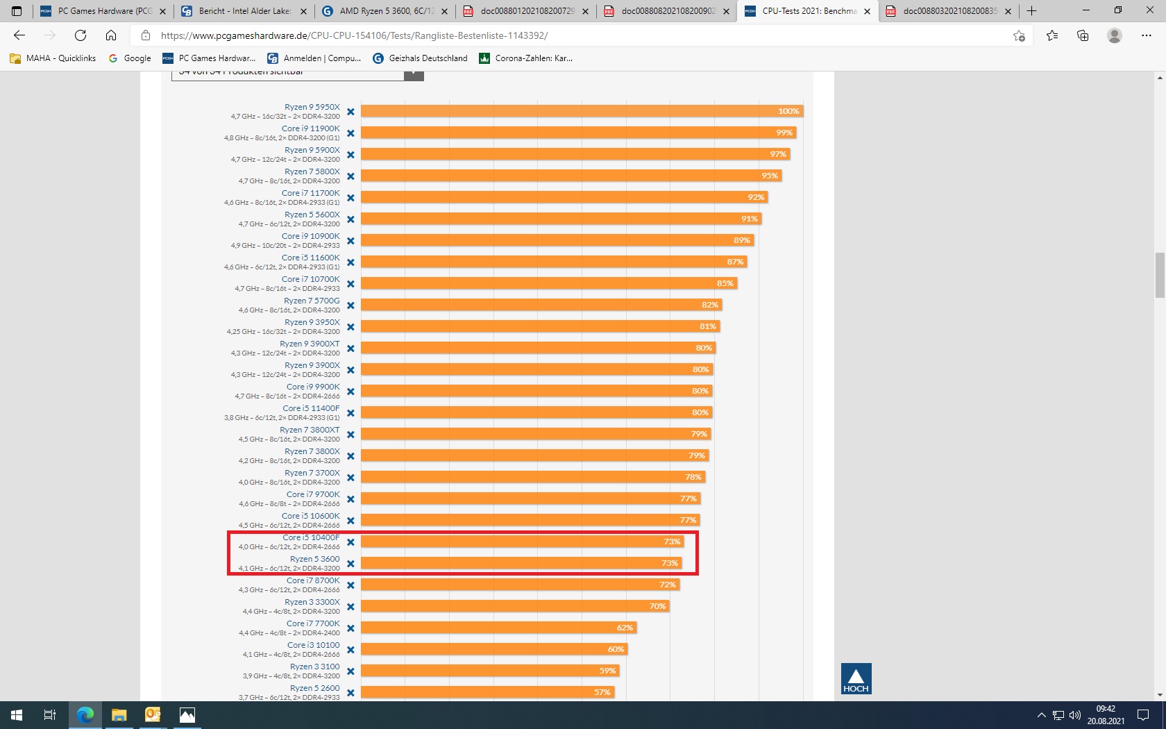 da der 3600 gleichauf mit dem 10400F liegt (siehe Anhang).