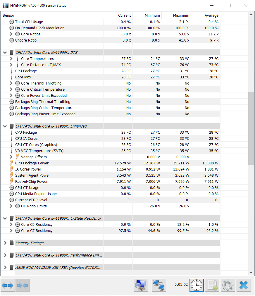 Wenn man den Software Sensoren vertraut, dann liegt mein 11900K im Idle bei ca. 12,5W. Mein 5900X liegt deutlich darüber. Aber wenn es um Aspekte bei Ryzen geht, die nicht ganz so rosig ausfallen, dann wird eh alles angezweifelt. So, believe or not. ^^Corpus Delicti schrieb:Bevor jemand wieder Test schreit: Mal HWinfo starten und selber schauen.