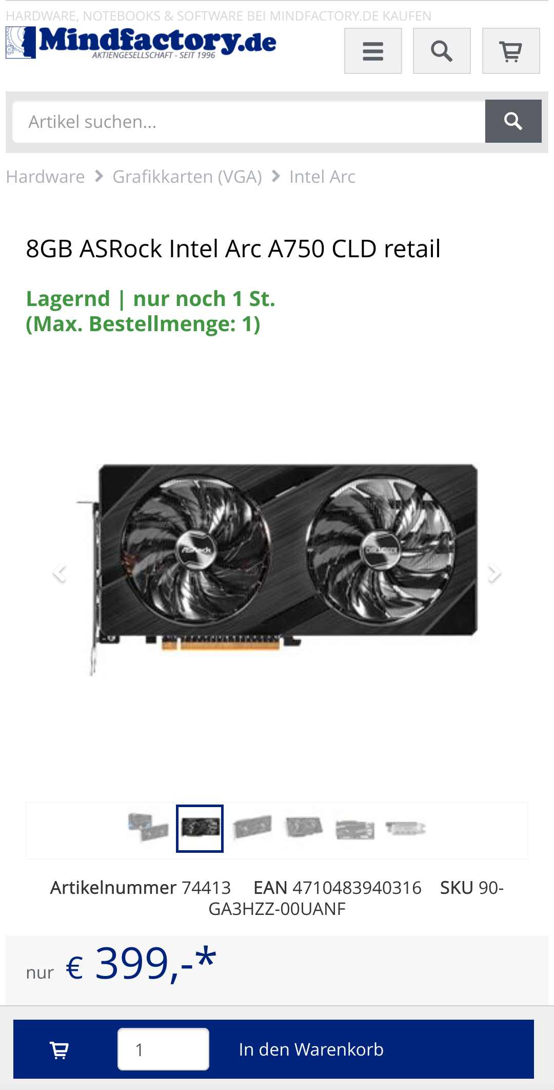 es gibt übrigens bei mindfactory auch die a750 von asrock gerade, genau 1 Stück... ^^ um 399.