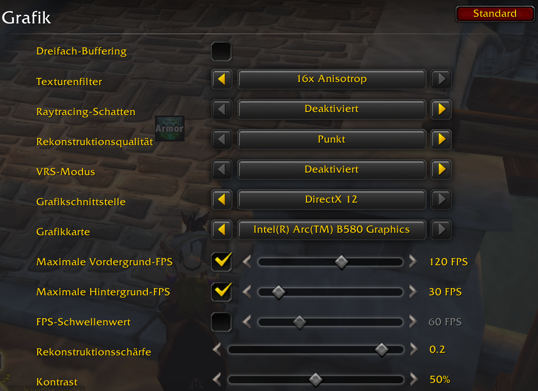 WoW Retail - Außerhalb der Großstädte ~ 120 FPS / Dornogal etc ~ 50-60 FPS // Vorher ~ 90 FPS / ~ 30-40 FPS