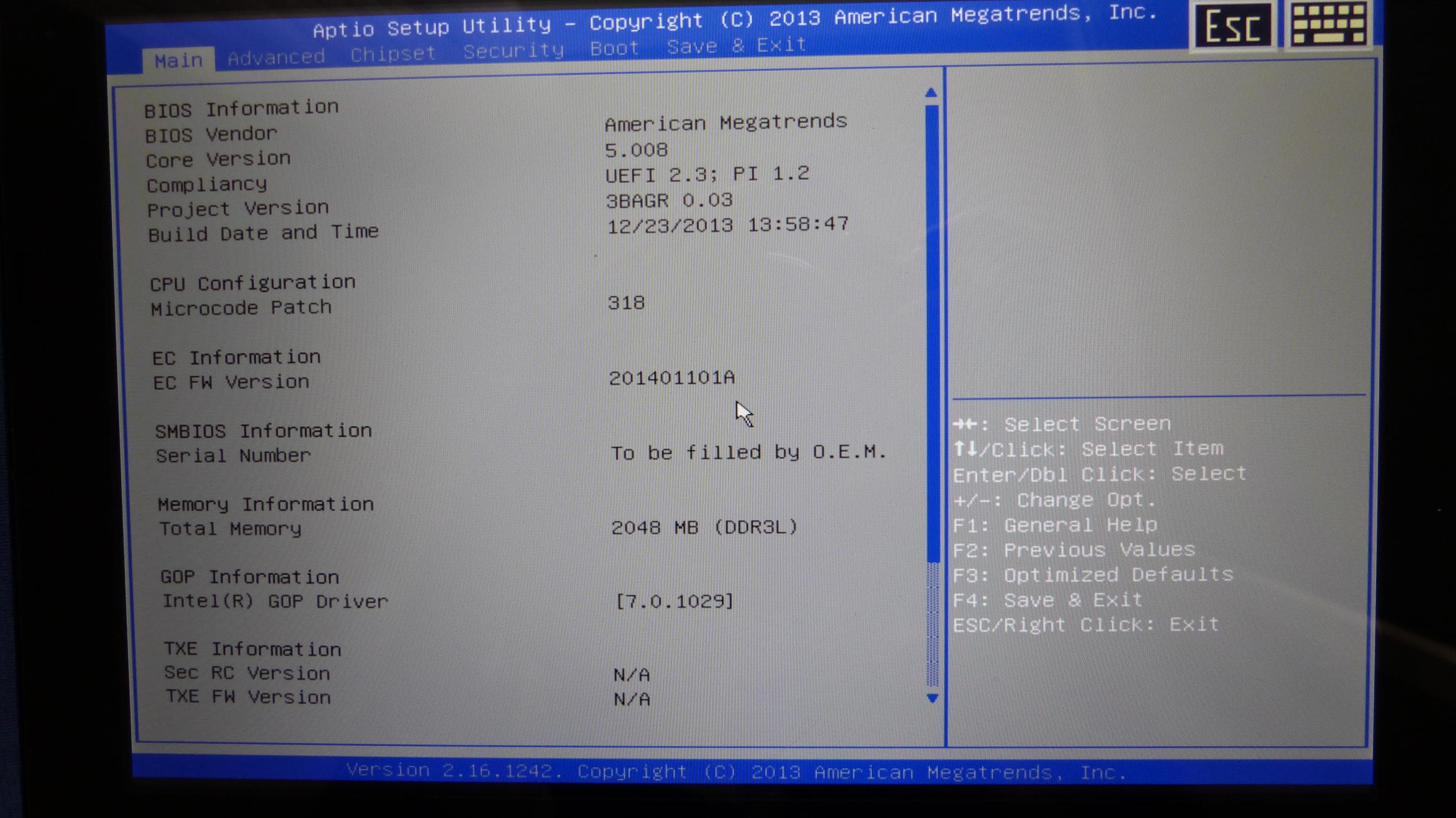 Normal sollte es dort so aussehen (man beachte die TXE Infomation ganz unten):