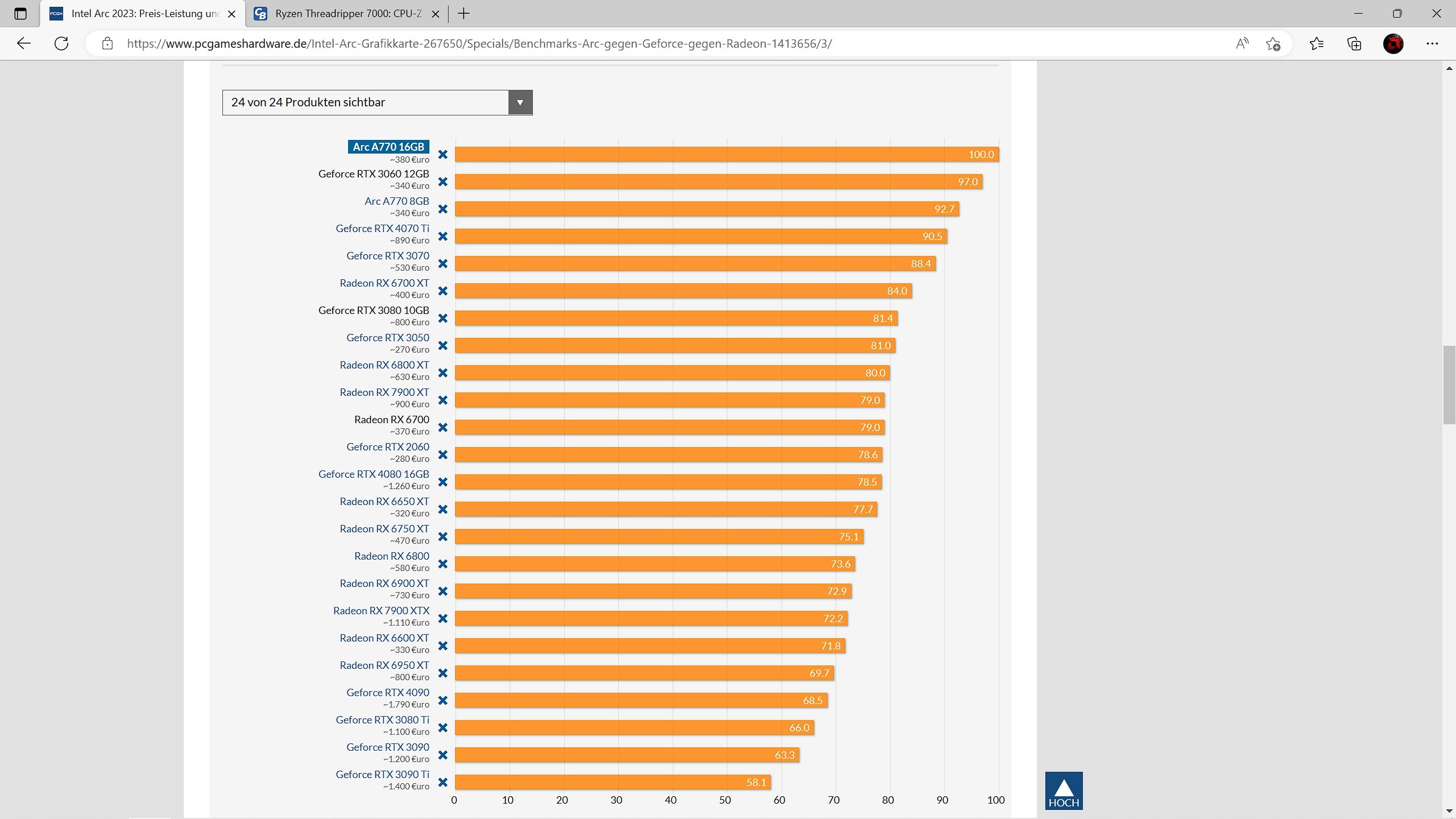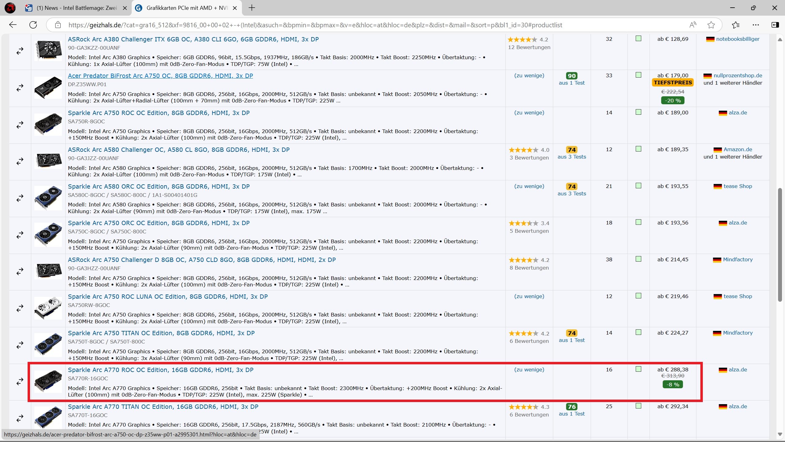 Naja, das kommt darauf an, wann man gekauft hast und ganz direkt vergleichbar waren die Karten sowieso nicht (bspw. beim Speicherausbau, vom Preislevel her, usw.), zumal die kleinere (zur hier diskutierten A580 und B580 passender ist der Leistungsklasse nach) A750 klar Preis-Leistungsieger seit Monaten ist (solange man nicht bestimmte Titel spielt, für die die A750 und A770 eher durchwachsen optimiert sind).Alesis schrieb:Fakt war dann, 770 teuer und schlechter als eine 6700 XT fürs gleiche Geld.