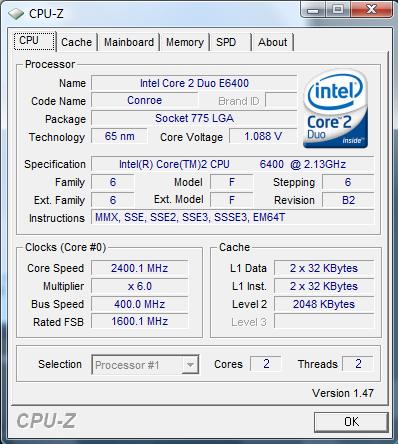 CPUID CPU Name Intel(R) Core(TM)2 CPU 6400 @ 2.13GHz