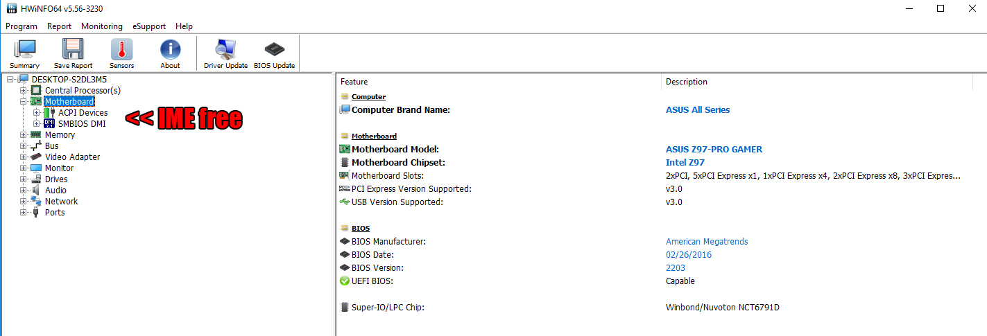 Letztes Bios Update (welches keinerlei IME Updates beinhaltet)