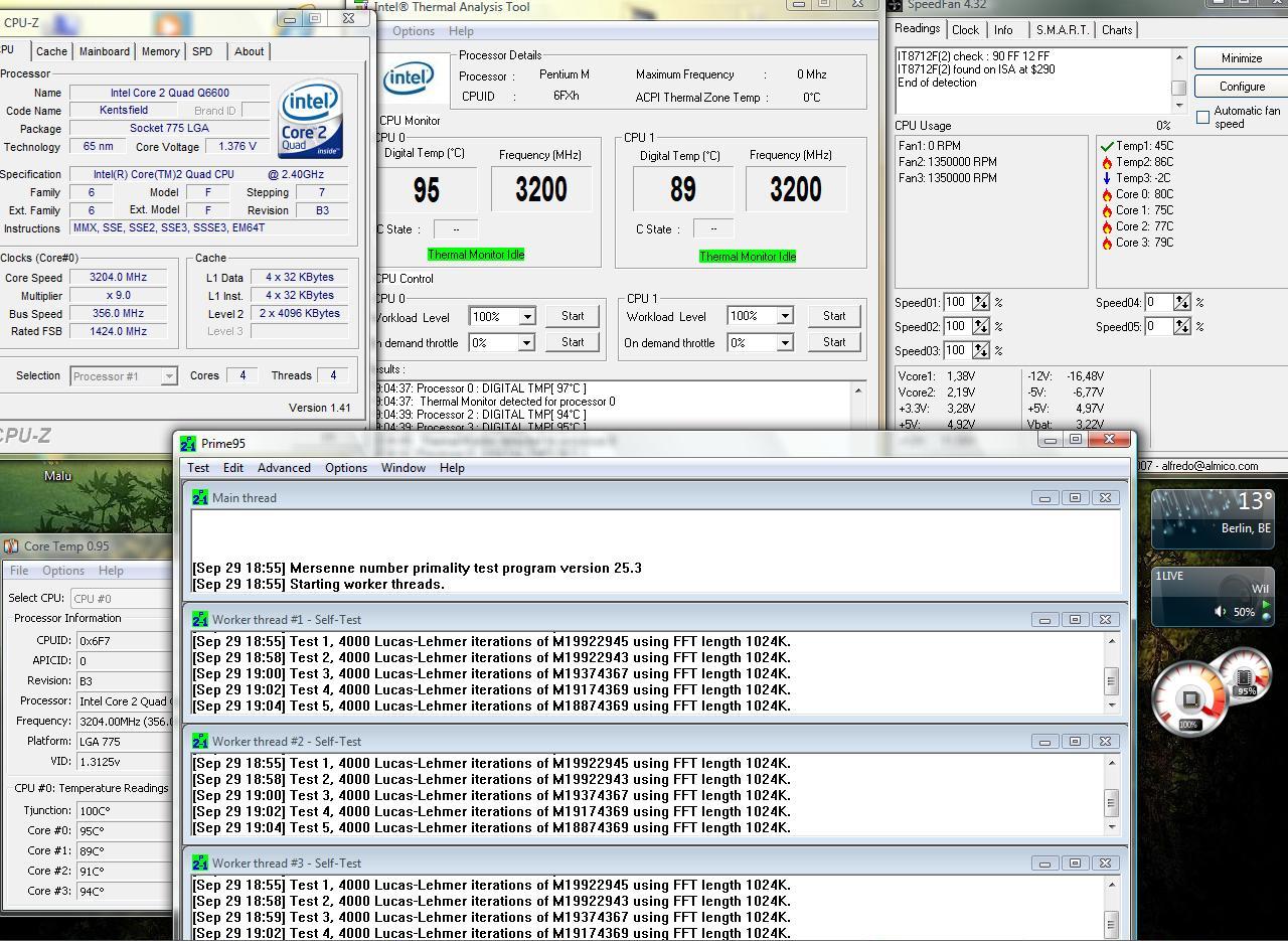 aber egal. Jetzt probier ichs noch mit der metal... aber dann hör ich auf mir en Kopf zu machen bis jetzt is er noch keinmal abgetürtzt und hat sich noch nie abgeschaltet und der primetest geht auch ohne fehler. Wenn irgendwan 3,2GHz nicht mehr reichen sollen (lange Zeit) wird halt in ne Wakü investiert. Miene Temps gehen ja jetzt wenigstens nicht mehr über 90°C und das mit dem runtertakten über 95°C hab ich abgestellt und veierabend bei der CPU is auch erst bei 110°C (dann schaltet sie sich erst aus). Und Paranoia verbreiten hilft keinem. Erst selber mal erleben dann Angst schürn. Aber trotzdem nochmal danke für den tipp.