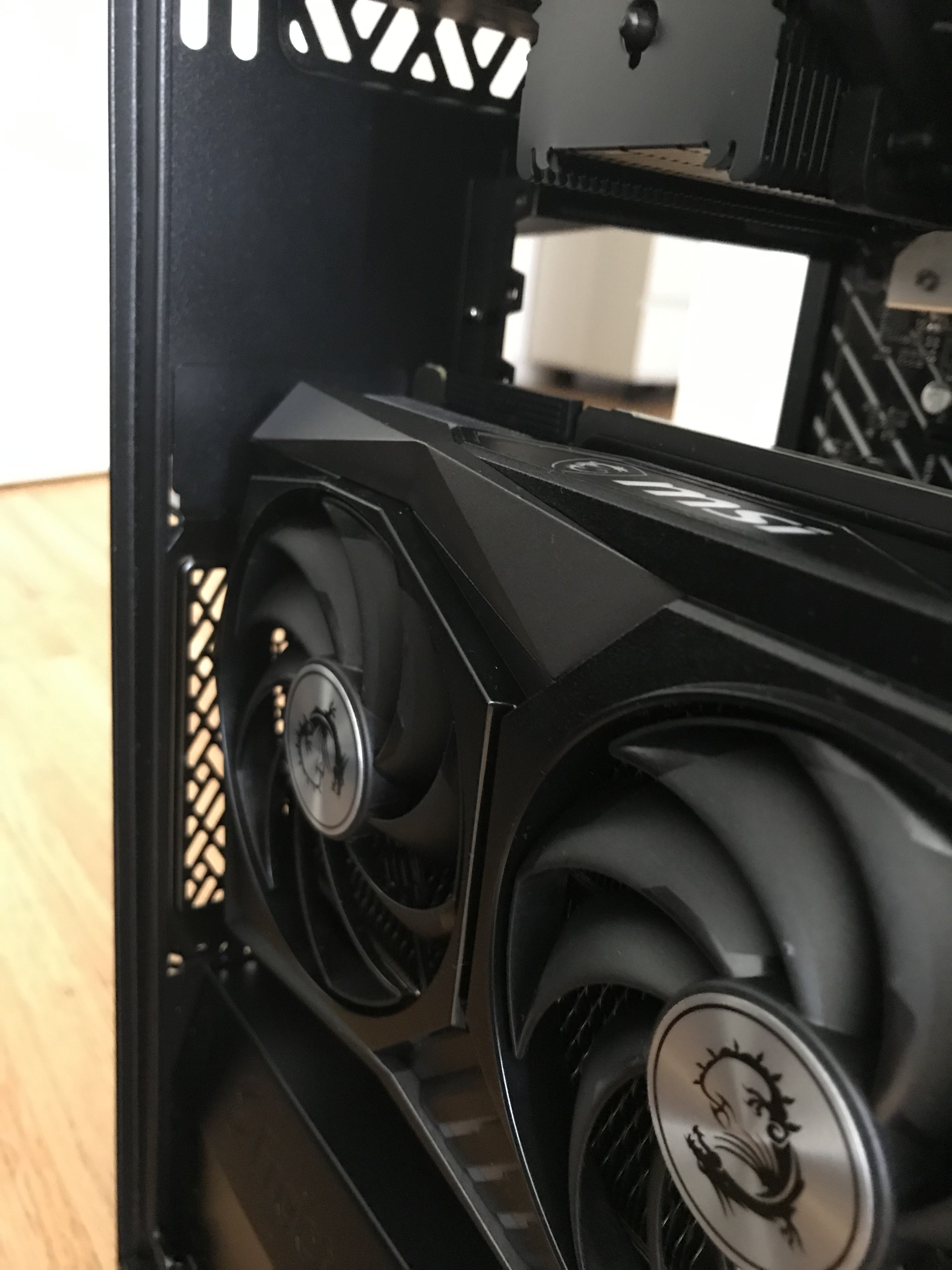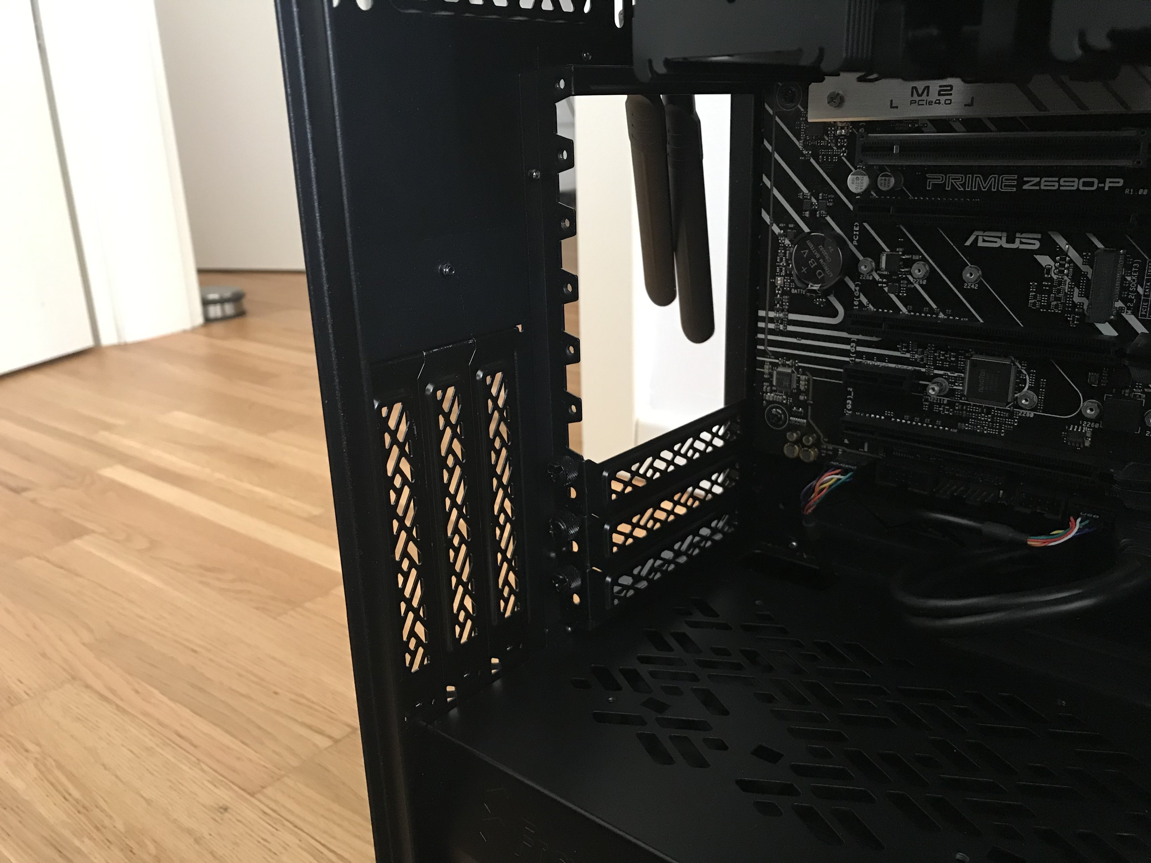 Die Lücke unter dem ersten Slot und nicht unter dem zweiten Slot zu lassen wäre trotzdem naiv betrachtet schicker gewesen. Da die Grafikkarte Luft braucht, kann man den Slot dann immer noch nicht komplett sorglos nutzen, aber eine kleine PCI 1x Karte ginge evtl.… und eine Slot-Nutzung über Riser-Kabel wär vielleicht auch drin.