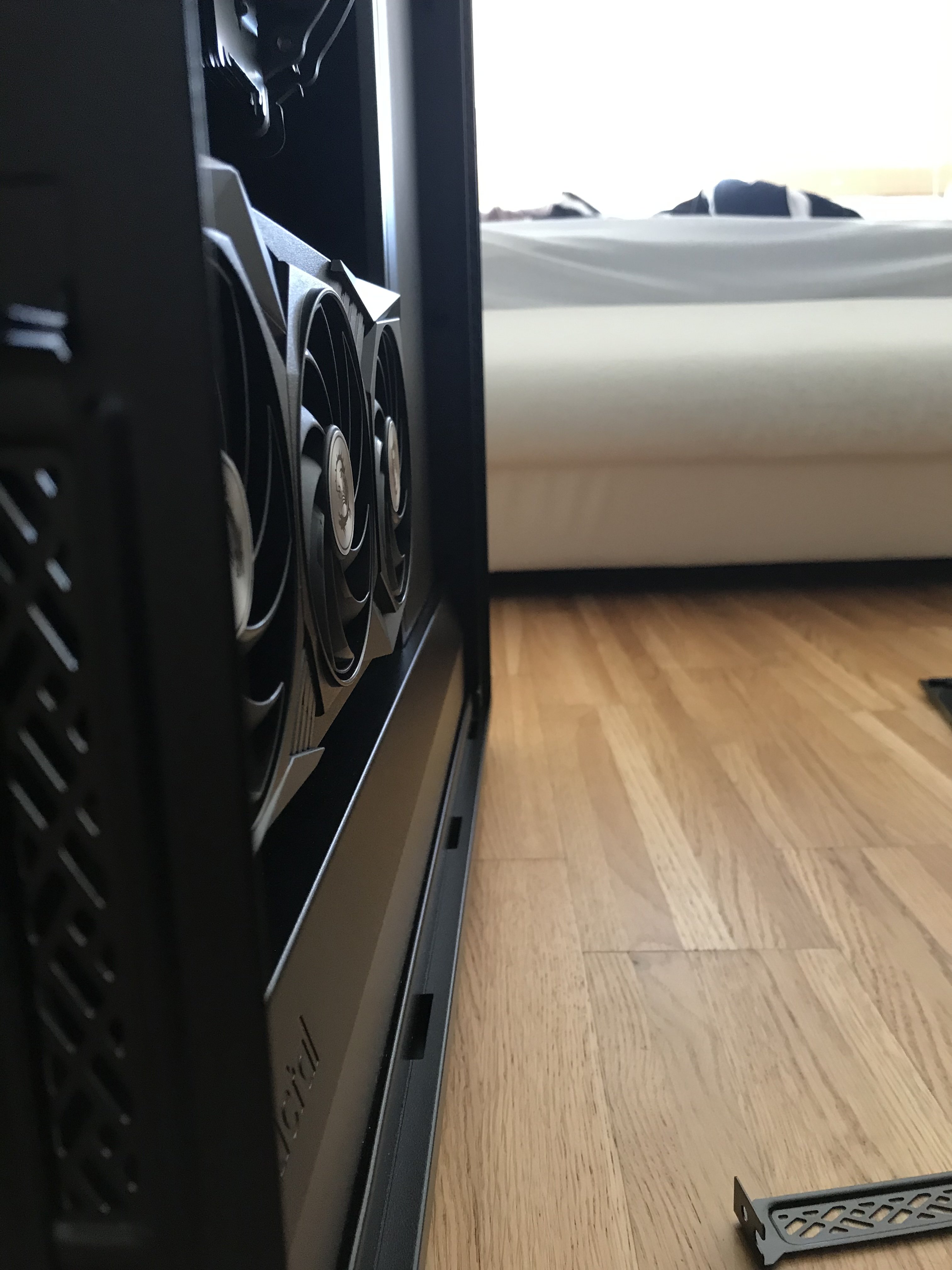 Man kann sich auch eines Riserkabels bedienen, die Grafikkarte aufstellen und dahinter die anderen PCI Karten "verstecken". Wie das aussieht und ob das Case das mitmacht 🙄