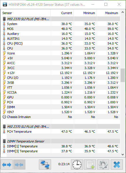 Einzig um die Kühlung muss ich mir noch Gedanken machen... Ich habe zwar nen 120er-Lüfter direkt auf den RAM gerichtet, aber trotzdem liege ich bei 39° auf drei Riegeln bzw. 41° auf einem Riegel. :C Eventuell muss ich den Lüfter halt nicht an die Netzteilsteuerung anstöpseln, sondern ans Mainboard und nach der CPU-Temperatur regeln lassen.