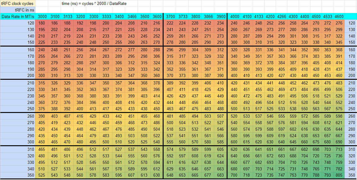 Mir wird der RAM bei 3800MHz und den Timings von der vorherigen Seite zu warm, der Prozessor sollte das eigentlich packen. Bei Zwangsbeatmung per Standlüfter lief der Memtest recht lange ohne Fehler (~30-40%), bis einer der vier Riegel zu warm geworden ist.