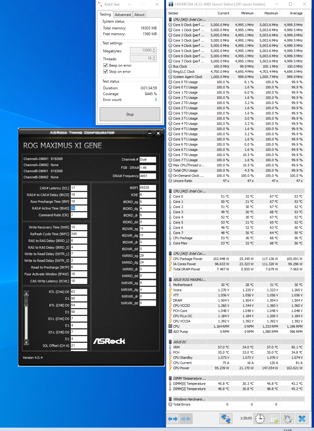 Es irritiert mich gerade total das die Module schon die 500% Karhu geschafft haben bei cl17 und 4700mhz. Gsat haut natürlich Fehler, aber noch in einem Bereich in dem ich schätze das es im Mainsystem eventuell laufen könnte, denn der imc ist dort gefühlt besser.