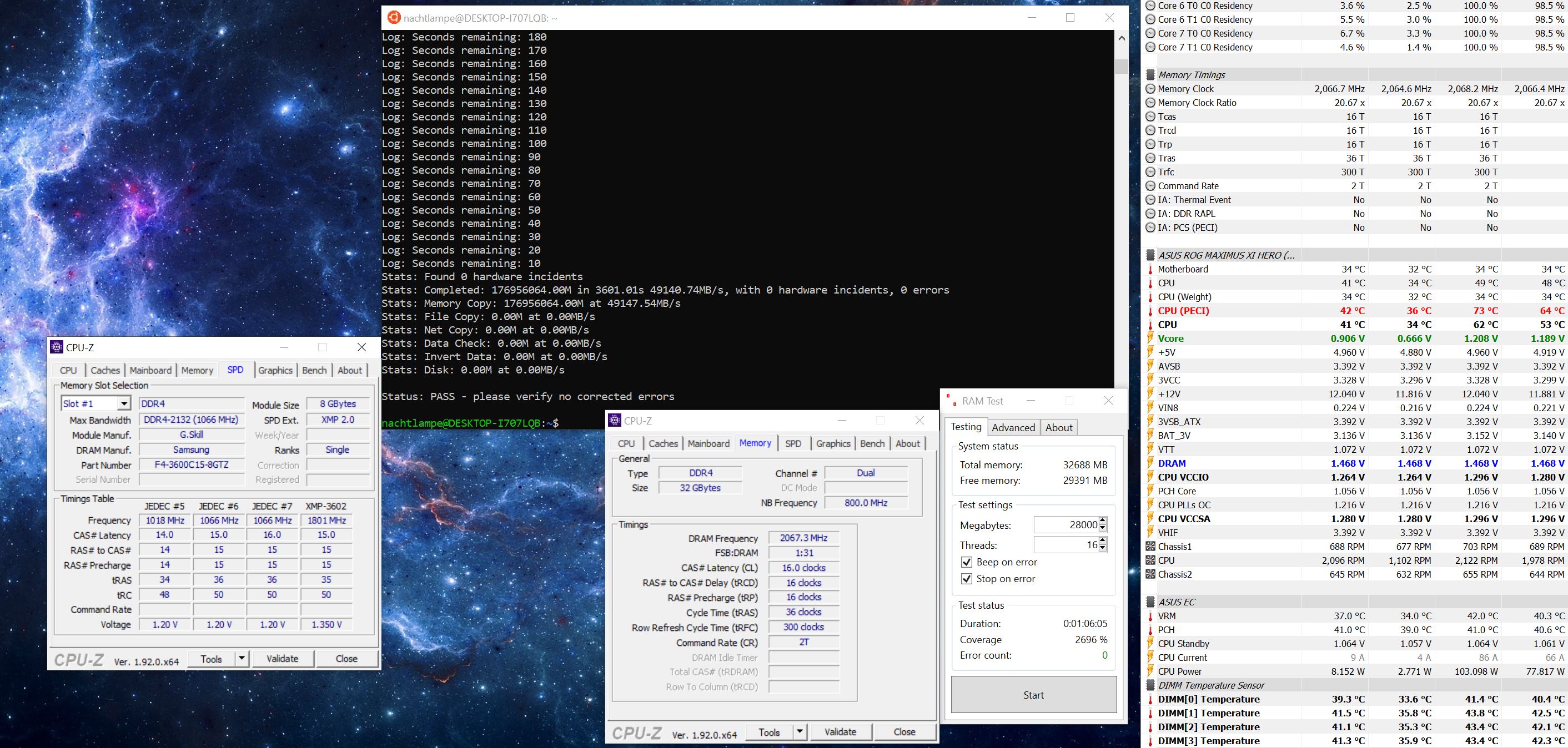 Ich hatte die letzten Tage meinen RAM 4266MHz noch 4 mal mit GSat getestet. Leider kamen bei ca. 3000s bei 2 Tests Fehler. Also VCCIO/VCCSA hoch auf 1.3V. Hat leider auch nicht geholfen.