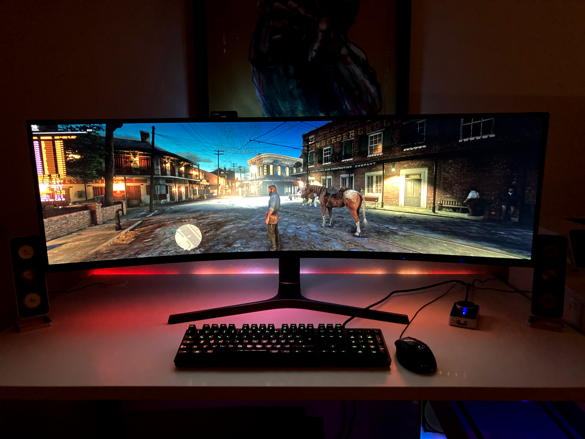 Mit der neuen Auflösung von 5120 x 1440 hat die 2070 zu kämpfen, keine Frage. War auch keine Überraschung, denn im Großen und Ganzen weiß ich schon, was ich tue, wenn ich Hardware auswähle. Side fact: Das 49"-Vorgängermodell des Samsung-Monitors mit 3840 x 1080 px war bereits bestellt, um genau den Grafik-Engpass zu umschiffen, der jetzt hier adressiert wird. Im letzten Moment vor dem Versand besann ich mich eines Besseren, widerrrief und bestellte das aktuelle Modell mit der zeitgemäßeren Auflösung. Gute Entscheidung, denn sonst hätte ich mich bald über das grob aufgelöste Bild geärgert. Nun ist es halt erst mal etwas eng mit den FPS.
