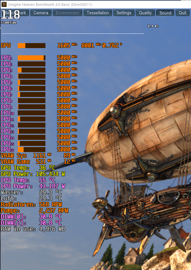 will im GPU-Limit hängen. Wenn die GPU-Auslastung im OSD nicht knapp 100% zeigt, erhöhe ich schon seit jeher die Grafikdetails, bis sie es tut. (Dass ich derzeit kein größeres Problem mit vollständiger GPU-Auslastung habe, liegt ja auf der Hand.