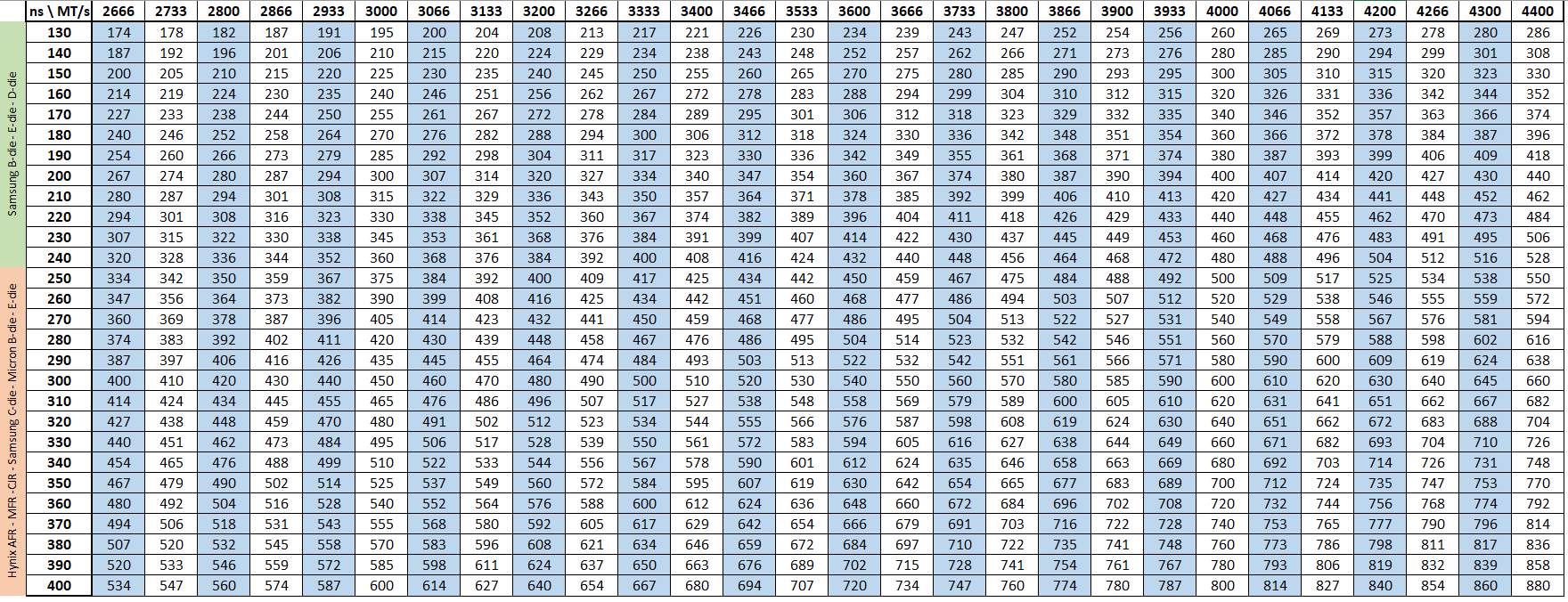 die berechnungen wie sie in der tabelle vorkommen findet man z.b. auch hier: https://forum.level1techs.com/t/guide-about-ram-cas-refresh-rate/117536