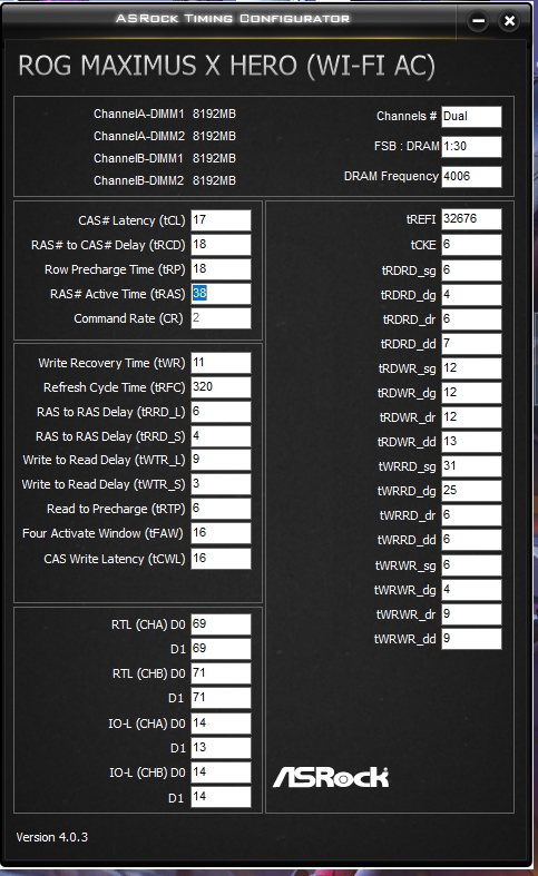 Er liegt ja glaub bei 69/71 rum, heißt schlechte Latenz in ns.Bei nen Offset von 16/16 müsste er irgendwo bei 65/67 landen.Wenn du 16/14 machst hast du zwar 65/65 aber ob das stabil läuft kann ich dir nicht sagen, das wäre schon sehr dolle straff.