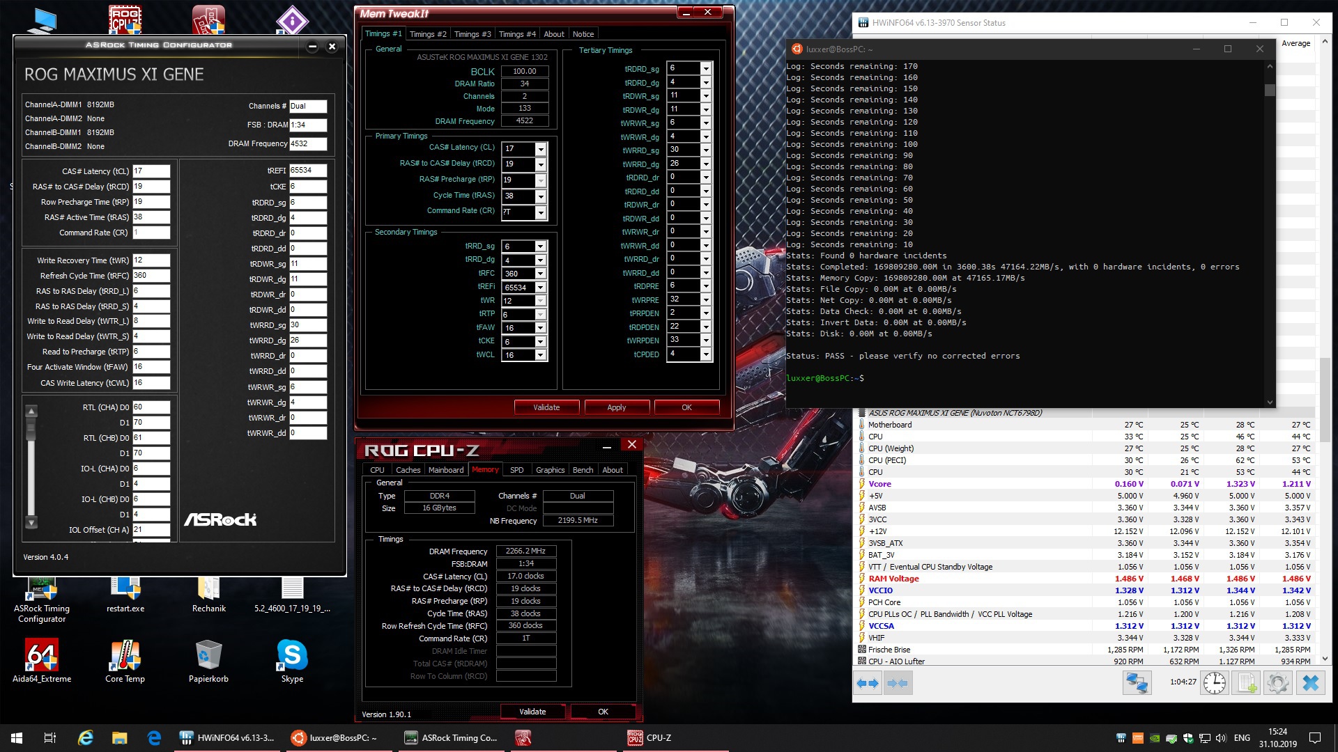 Ich teste grade was passiert wenn ich zusätzlich die BCLK zur CPU Spannung erhöhe auf 1000mV und die Flankengeschwindigkeit auf 4,5V/ns, das sollte auch was bringen.