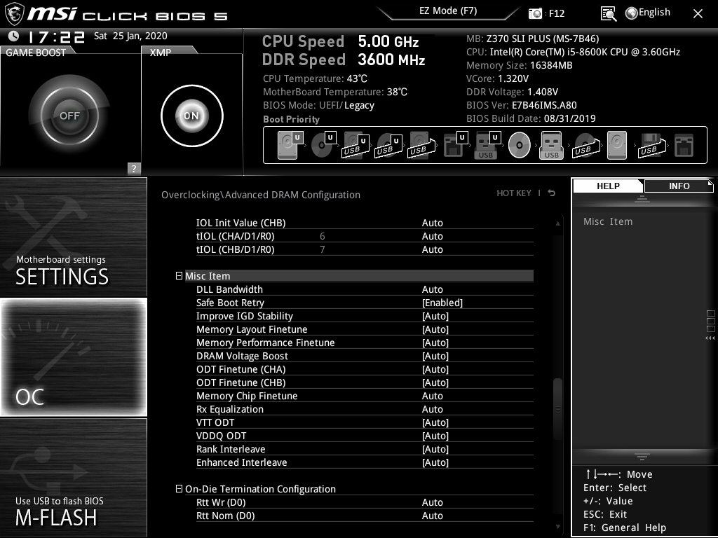 Die Haupttimings kannst so lassen, Subs alle auf Auto. Und schau ob du MRC Fastboot hast, das müßte unterhalb der RTLs kommen.