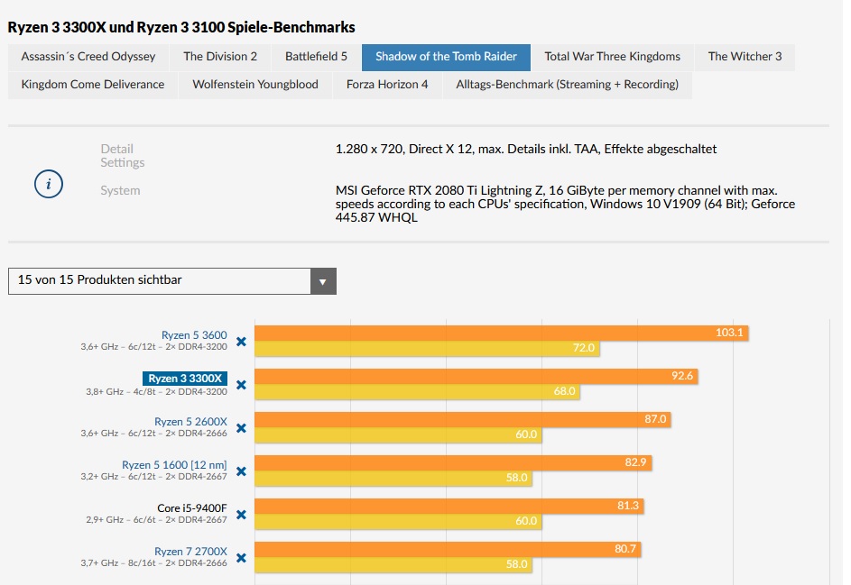 Nimm ANNO1080, Far Cry New Dawn und BFV - vergleiche die Werte des 9400F mit deinem 3700X. Wo 9400F in den ersten beiden Titeln glänzt, kackt dieser beim letztem vollkommen ab.