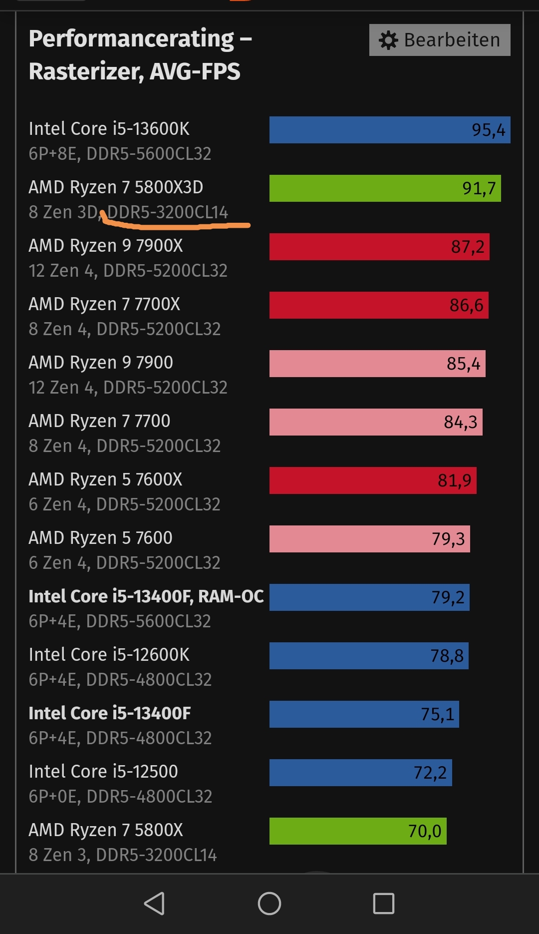 Schade das es nicht mal ein paar Vergleichszahlen bei Verwendung von DDR4 RAM gibt, da ja die Intel 13. Prozessorgeneration auch mit DDR4 betrieben werden kann. Gerade im hinblick auf ein Budget Gaming-System ließ sich hier der ein oder andere Euro sparen. Denn DDR5-RAM ist immer noch fast doppelt so teuer und DDR4 eventuell sogar vorhanden.