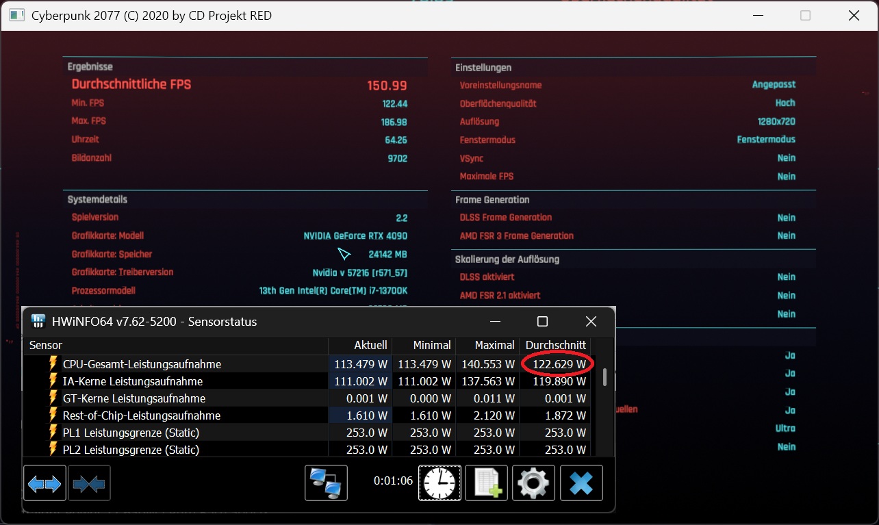 Und nimm bitte einen modernen Titel, der CPU Leistung fordert, z.B. MSFS, Stalker 2 oder Cyberpunk. Nichts, wo sich die CPU langweilt.