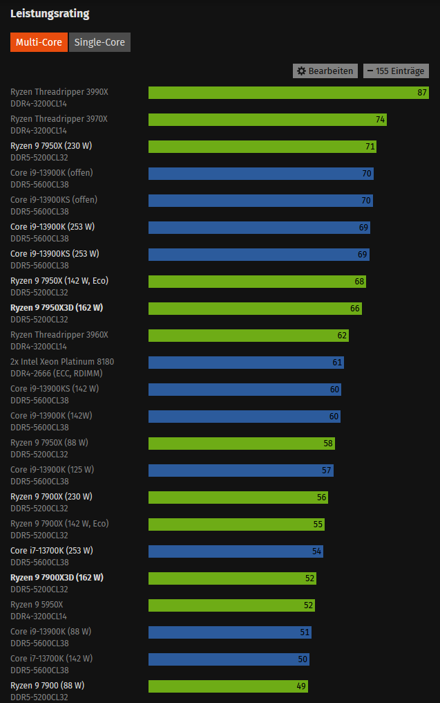Jetzt stehe ich vor der Entscheidung: Intel Core i7 13700F oder AMD Ryzen 7 7800X3D? Der AMD klingt für Gaming sehr gut, aber wenn ich manche Tests richtig verstehe ist er bei anderen Anwendungen nicht so stark.