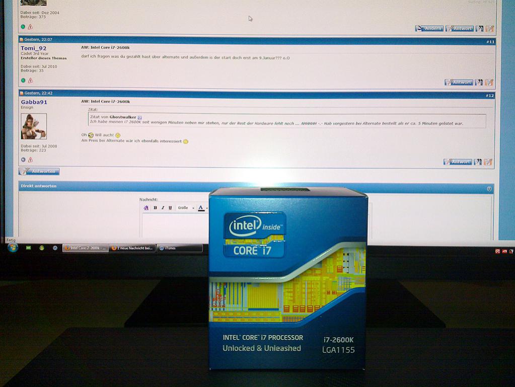 Ich habe meinen i7 2600K seit wenigen Minuten neben mir stehen, nur der Rest der Hardware fehlt noch ... AHHHHH -.- Hab vorgestern bei Alternate bestellt als er ca. 5 Minuten gelistet war.
