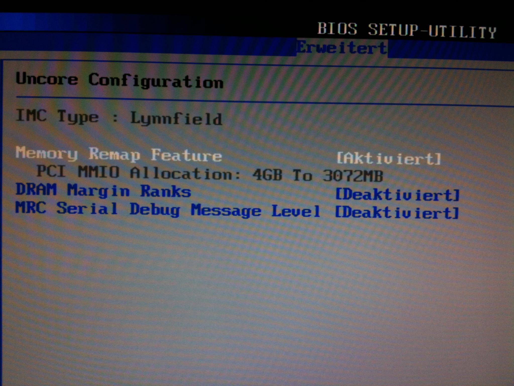 -Memory Remap (erstes Bild unten)musst du deaktivieren insofern du nicht XP 32Bit hast.