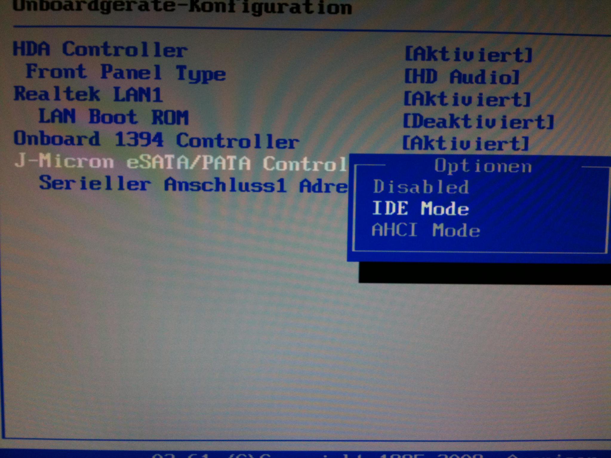 ... ja, AHCI geht in Ordnung. Wenn du eSATA nicht brauchst, kannst du den JMicron deaktivieren. Macht aber jetzt nicht wirklich einen Unterschied ob er läuft oder nicht. Könnte aber sein, dass dein IDE Port und die orangenen SATA Ports mit dranhängen- Deine Entscheidung.