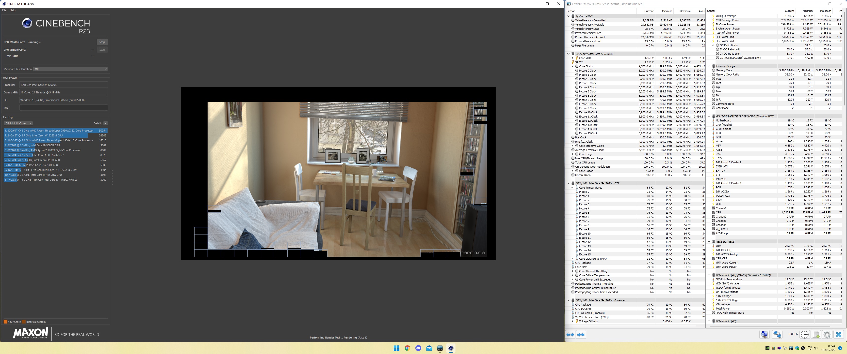So gut wie jeder 12900k lässt sich auf 5.2ghz allcore takten. Mit 5.2ghz komme ich auf 260w im cinebench und das ist mit einer 280er AIO noch gut kühlbar, heißester Kern 84°, kühlster Kern 74°.bigfudge13 schrieb:Für 5,2 GHz Allcore muss der aber krass selektiert sein. Hab mal meinen 12700K auf 8x4,9 GHz laufen lassen, der hat bei CB R23 Multi 200W gezogen, hab das gerade noch gekühlt bekommen.