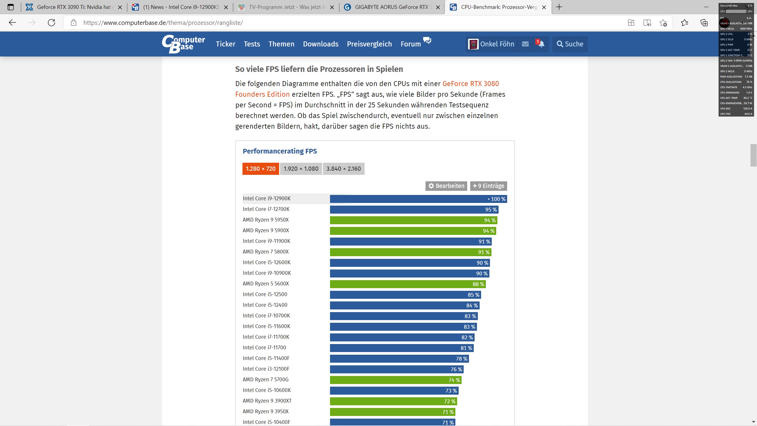 Ansonsten ist die 12900K in Games im Schnitt ganze 6 % vorne.