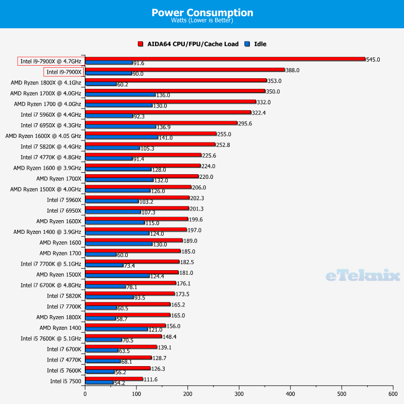 Der 7900x erkauft sich seine Mehrleistung mit mindestens demselben Mehrverbrauch , meist mehr . OK , könnte man jetzt sagen - mehr Leistung , mehr Verbrauch , das passt nur nicht weil Intel aus Marketing Gründen einerseits Overclocking propangiert , andererseits dem Mainboard Herstellern was von 140/165 Watt TDP vorgeträumt hat .