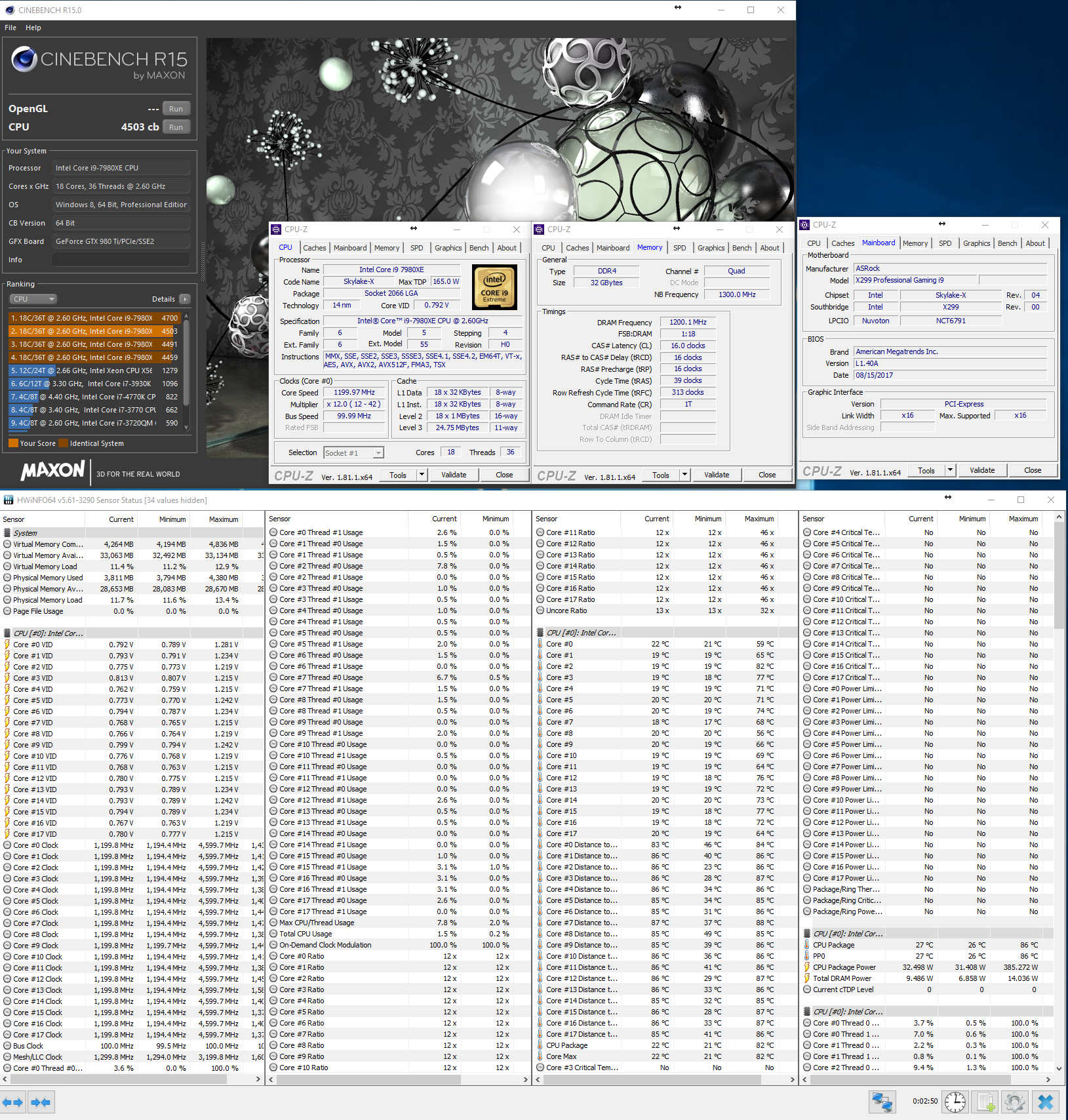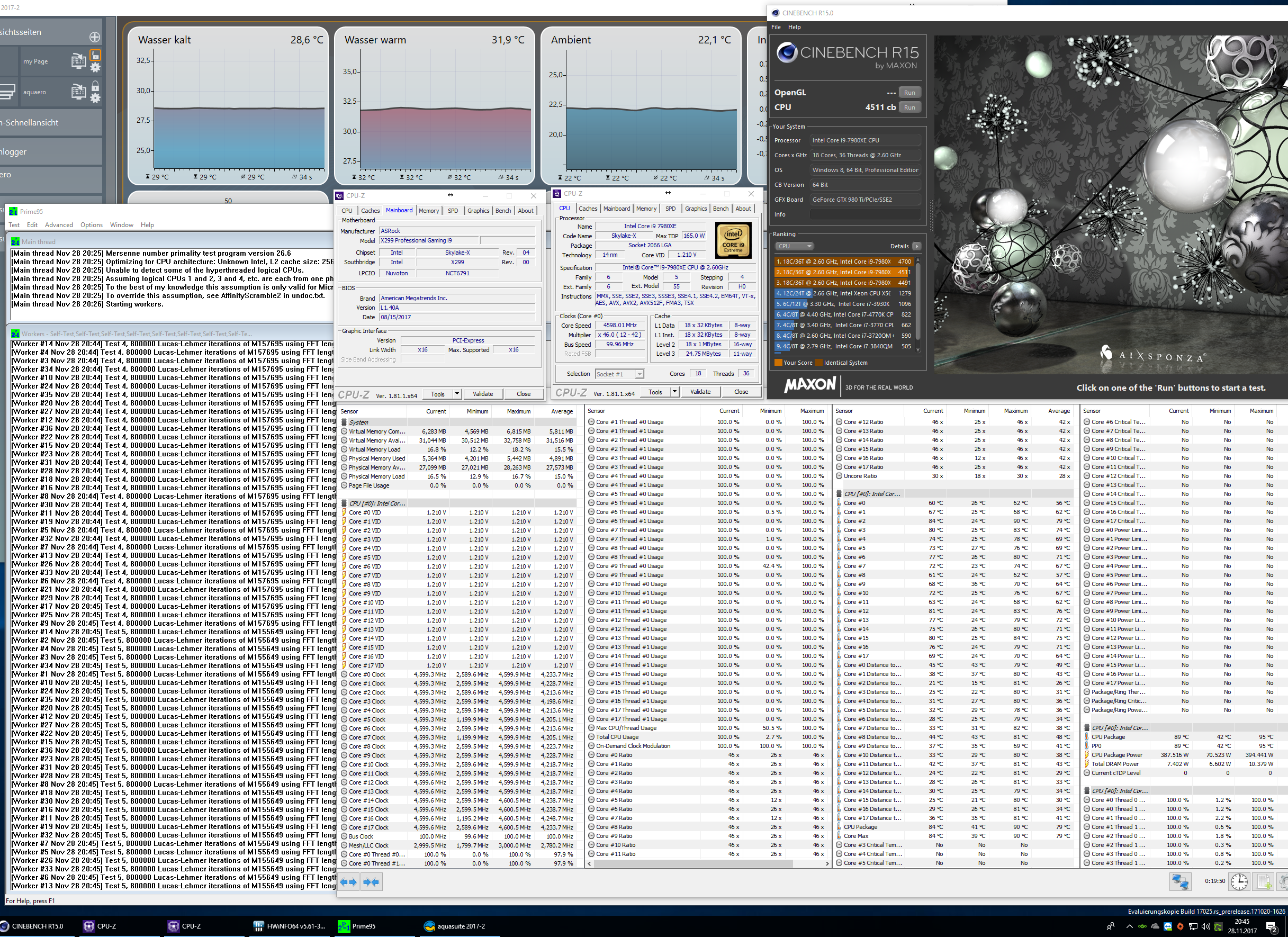 @Trochaion: Oh, sehe gerade Du hast den 18-Kerner ? Meiner ist nur der 12-Kerner, sorry für die Verwirrung. Naja, es sind im Schnitt 4,7 Ghz, die Kerne sind sehr ungleich, daher habe ich sie entsprechend separat ausgelotet bzw abgeregelt, speziell ein Kern ist sehr mies. Die Temperaturen sind auch nicht nett unter Prime